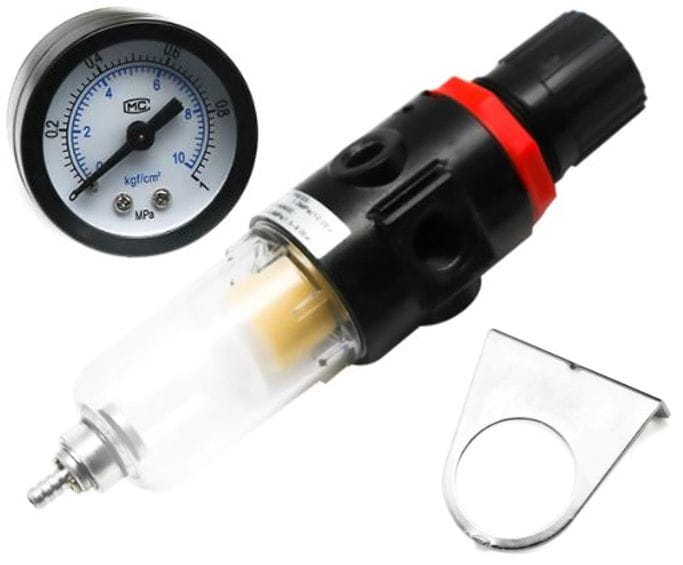 Jednostka przygotowania powietrza przeznaczona do instalacji pneumatycznych — redukuje ciśnienie zasilania do wartości roboczej, filtruje powietrze z zanieczyszczeń stałych oraz usuwa skropliny wodne. Stosowana jako element ochronny przed narzędziami pneumatycznymi wrażliwymi na wahania ciśnienia i wilgoć.