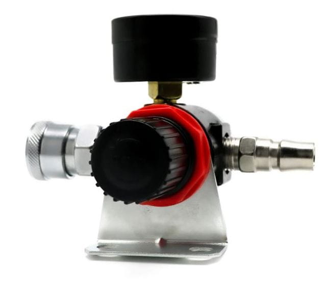 Zawór przepływowy utrzymuje ustawione ciśnienie robocze niezależnie od wahań po stronie zasilania. Zapobiega to uszkodzeniom narzędzi pneumatycznych pracujących w wąskim zakresie dopuszczalnych ciśnień — np. pistoletów lakierniczych, gdzie nadciśnienie wpływa bezpośrednio na jakość natrysku.