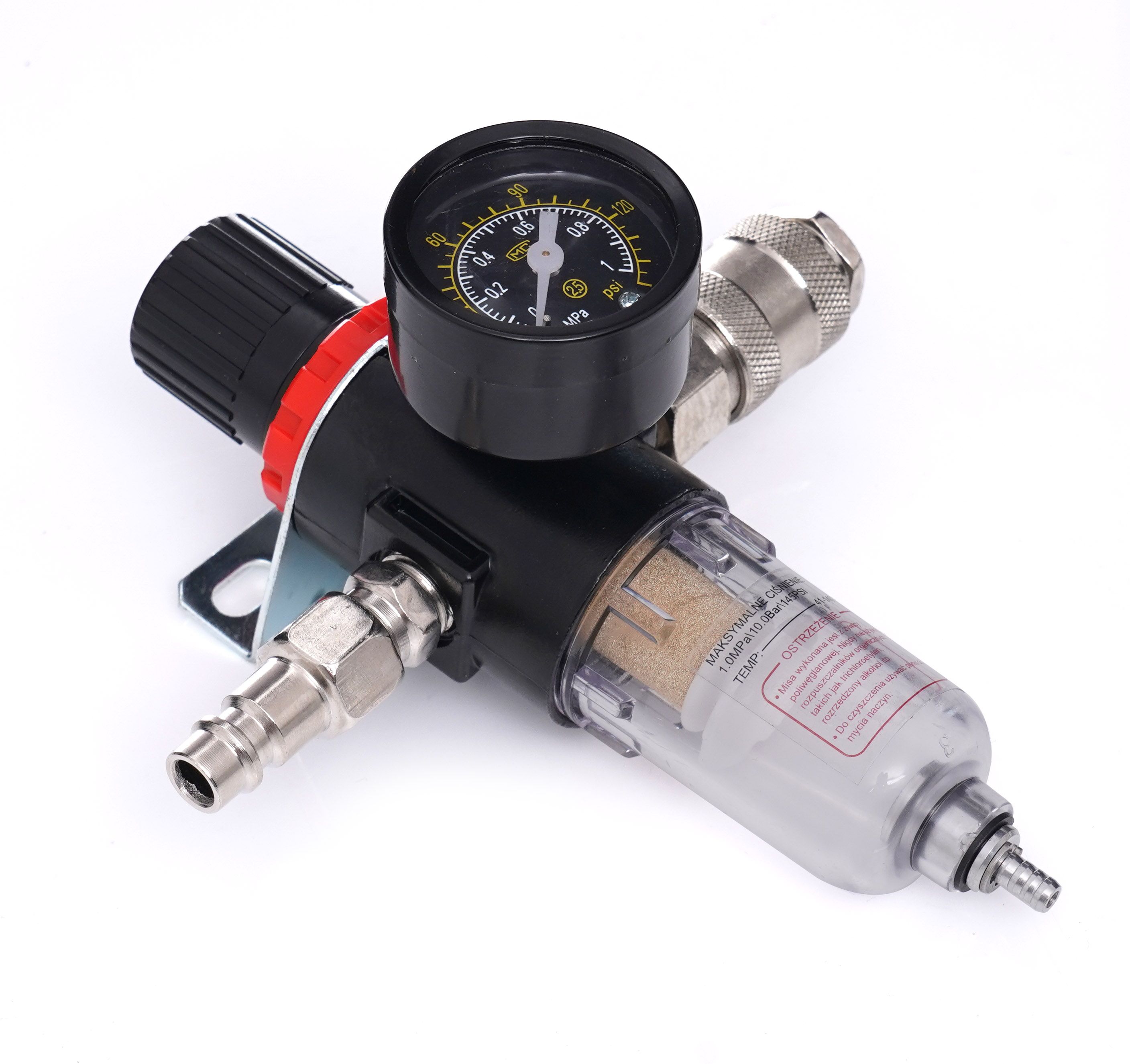 Reduktor ciśnienia/filtr powietrza z odwadniaczem 1/4 KD1497 / KD1497 / KRAFT&DELE to praktyczny reduktor ciśnienia z filtrem i odwadniaczem do pracy z pneumatyką w warsztacie. Jeśli zależy Ci na stabilnym ciśnieniu roboczym i ochronie narzędzi przed wilgocią oraz zanieczyszczeniami, KD1497 będzie rozsądnym wyborem do typowych instalacji G1/4" BSP.