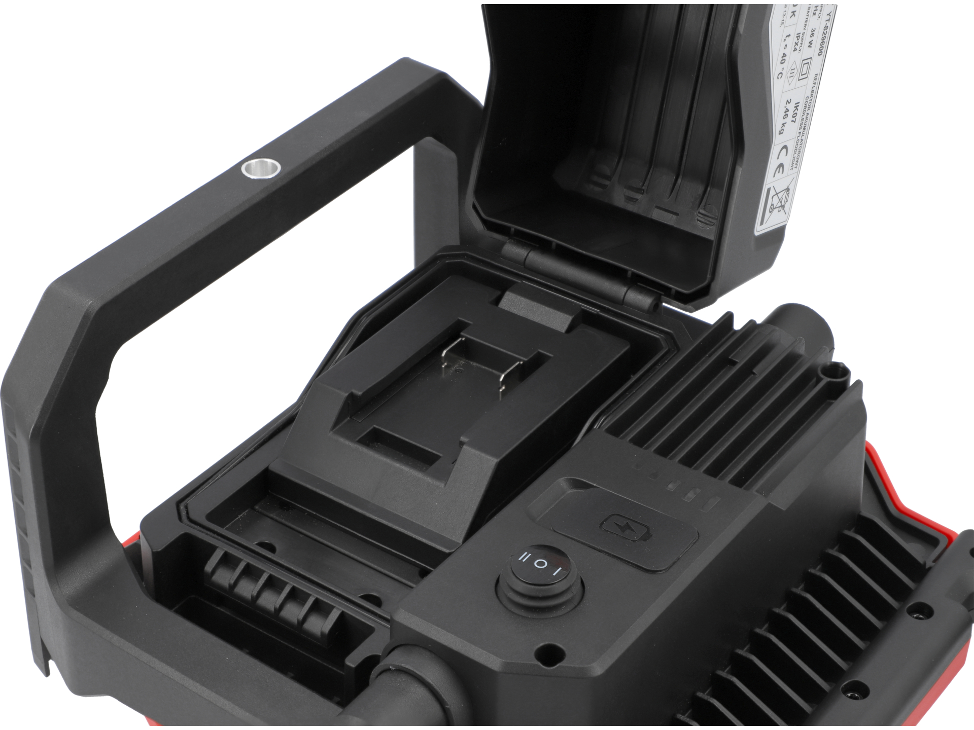 Reflektor współpracuje z akumulatorami litowo-jonowymi 18V z systemu Yato. Czas pracy zależy od pojemności akumulatora – przy akumulatorze 2.0 Ah w trybie niskim można uzyskać około 2-3 godzin pracy, przy akumulatorze 4.0 Ah czas ten wydłuża się do 4-6 godzin. W trybie wysokim (6000 lm) czas pracy jest proporcjonalnie krótszy.