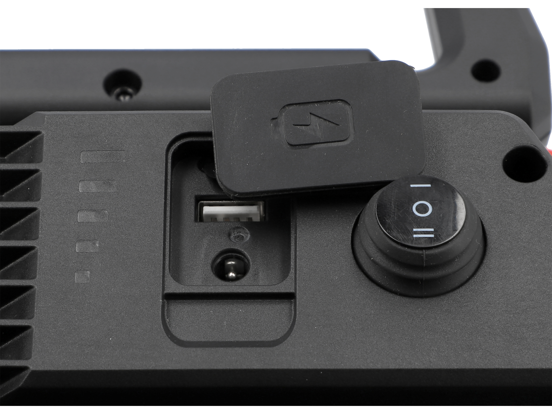 Port USB pozwala na ładowanie urządzeń mobilnych z zainstalowanego akumulatora. Funkcja przydatna w lokalizacjach bez dostępu do źródeł energii, gdzie reflektor pełni rolę mobilnej stacji zasilającej.