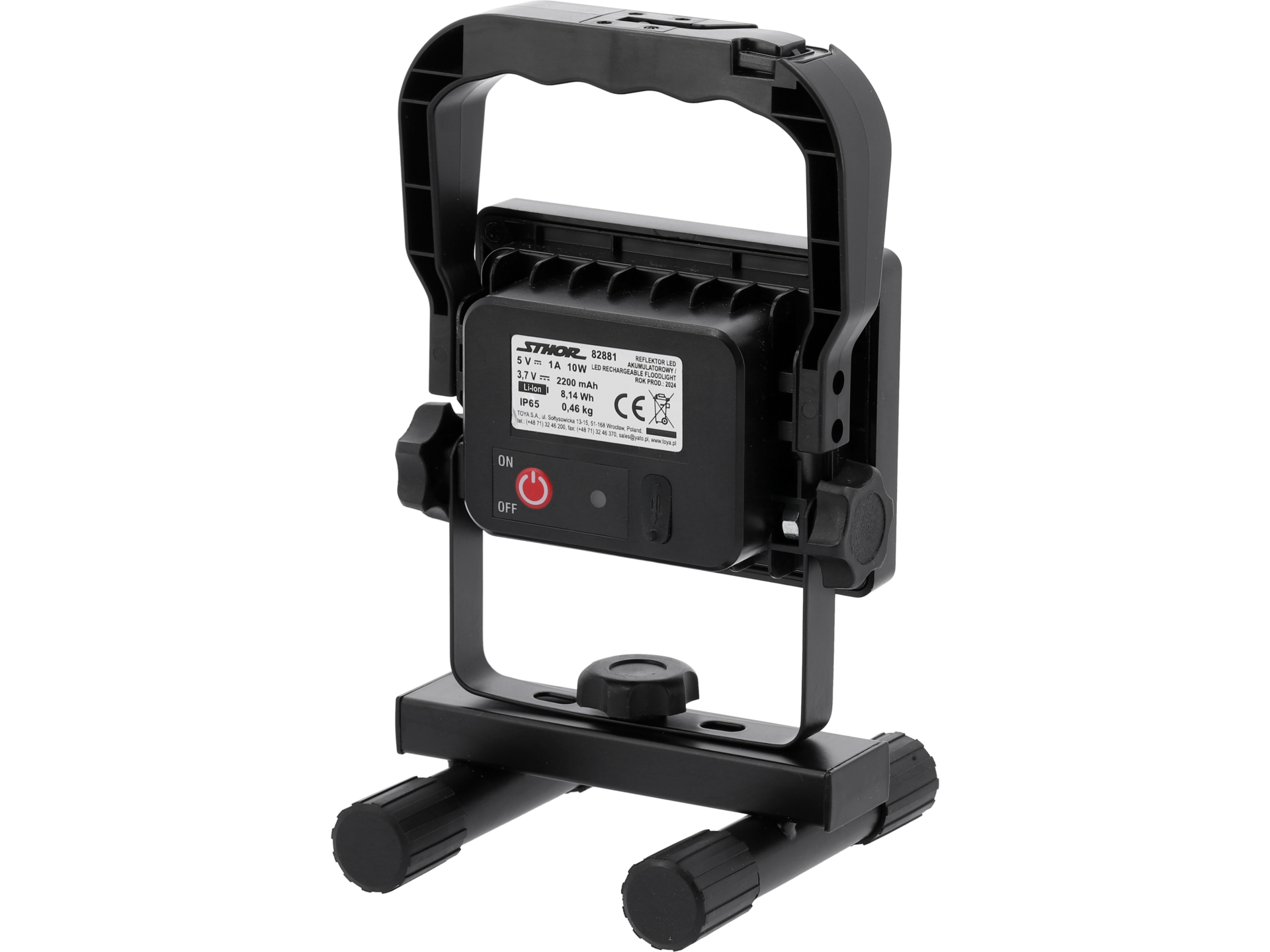 Przenośność urządzenia jest dodatkowo ułatwiona przez wbudowany haczyk oraz niewielką masę wynoszącą tylko 0.46 kg. Wskaźnik naładowania akumulatora informuje o stanie baterii, a dzięki akumulatorowi Li-Ion 2200 mAh reflektor może pracować do 4 godzin w trybie oszczędnościowym. Czas ładowania wynosi od 3 do 4 godzin, a ładowarka USB typ C umożliwia łatwe i szybkie naładowanie.