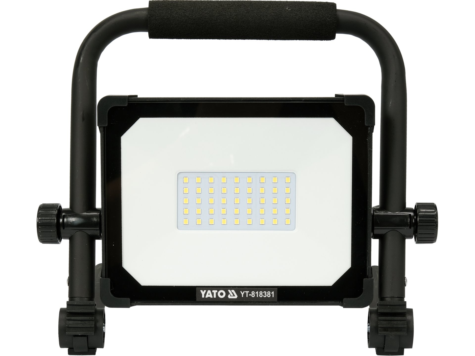 Reflektor warsztatowy z diodami SMD LED o mocy 30W i strumieniu świetlnym 2850 lm. Konstrukcja w klasie szczelności IP65 z aluminiową obudową i regulowanym stojakiem zapewnia uniwersalność zastosowania w warunkach wewnętrznych i zewnętrznych.