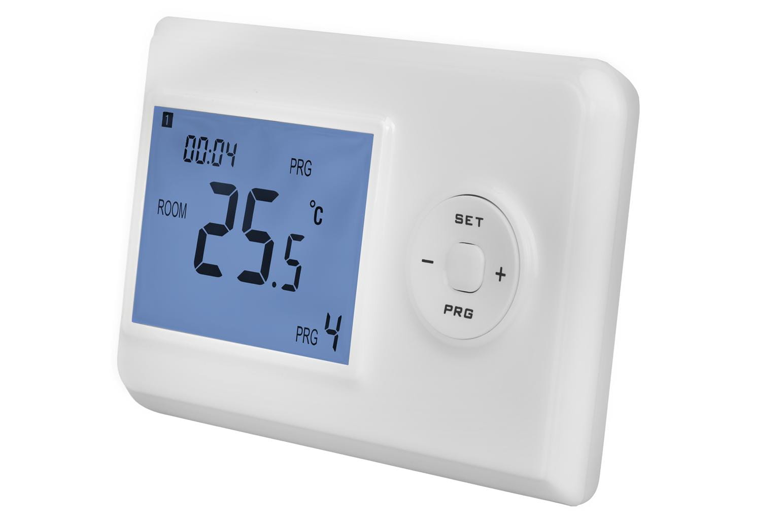 Termostat steruje odbiornikiem bezprzewodowo. Oznacza to, że panel sterujący można umieścić w dowolnym miejscu pomieszczenia bez konieczności prowadzenia przewodów między termostatem a kotłem lub grzejnikiem elektrycznym.