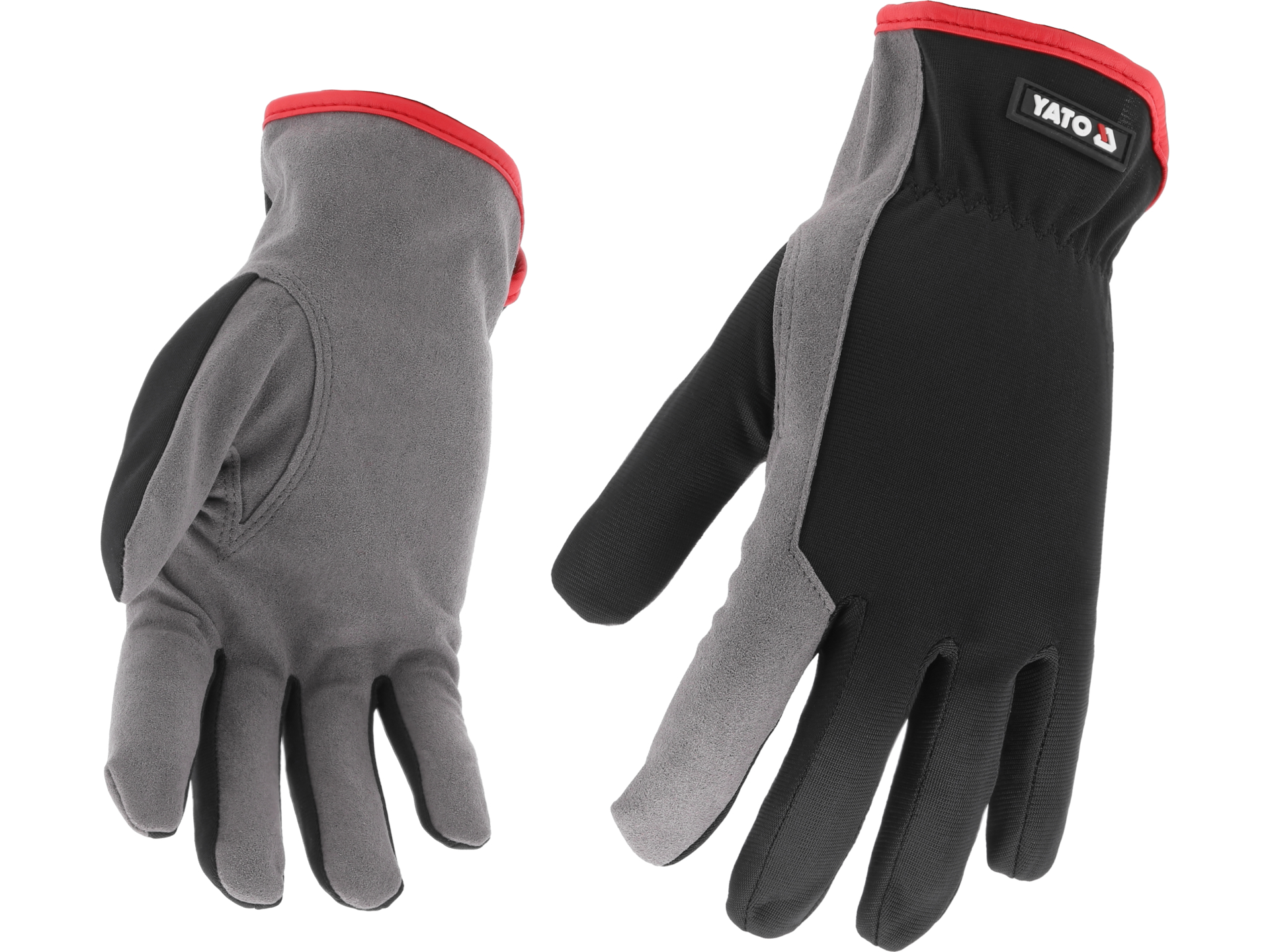 Rękawice robocze wykonane ze skóry syntetycznej z mikrowłókien nylonowych, przeznaczone do prac wymagających ochrony przed zabrudzeniami i otarciami przy zachowaniu swobody ruchów. Część chwytna zapewnia odporność na ścieranie, a oddychająca tkanina poliestrowa na wierzchu dłoni umożliwia cyrkulację powietrza podczas długotrwałego użytkowania.