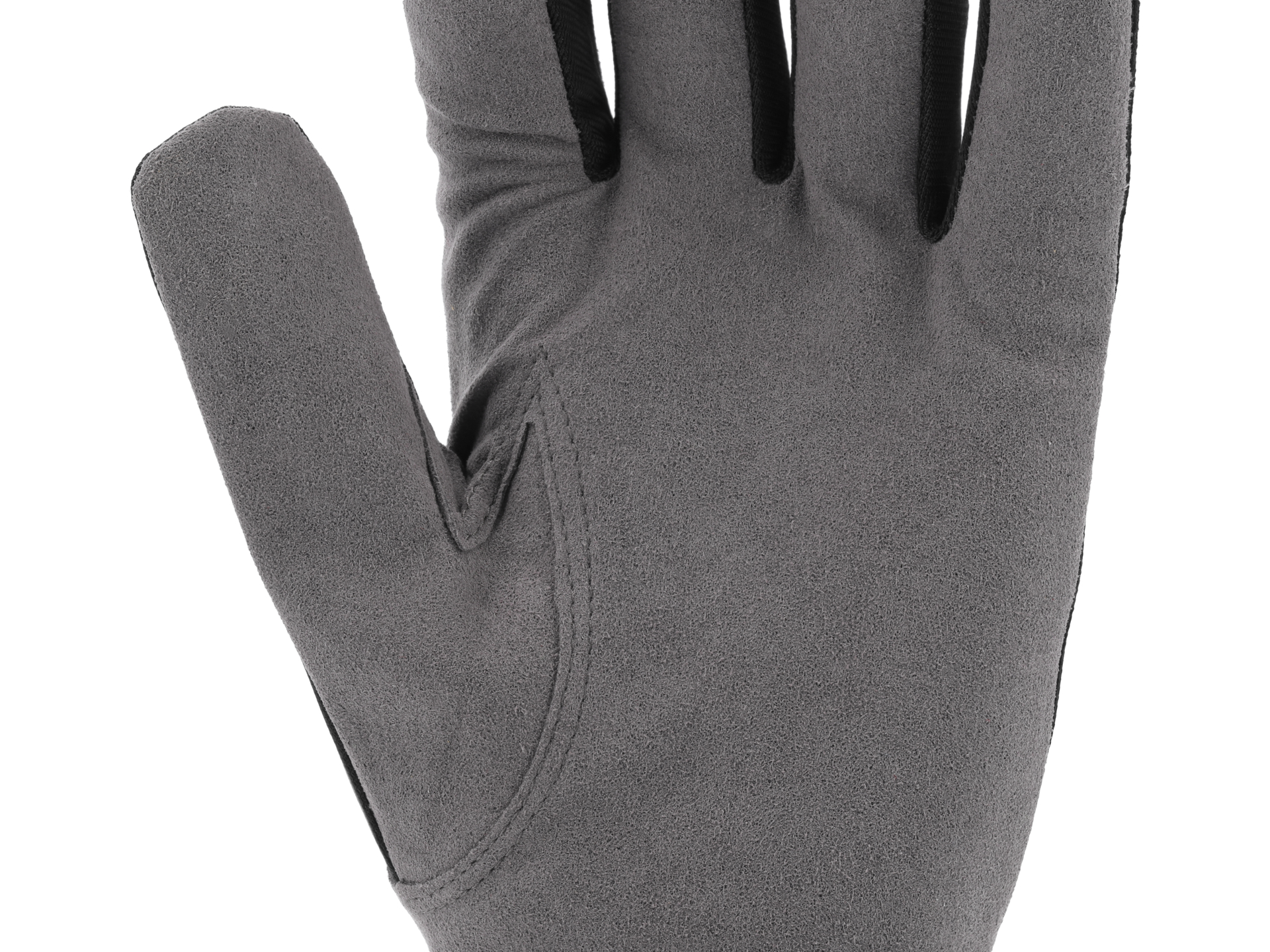 Część chwytna wykonana z materiału syntetycznego opartego na mikrowłóknach nylonowych, który zapewnia odporność na ścieranie przy zachowaniu elastyczności. Materiał ten charakteryzuje się lepszą odpornością na wilgoć i zabrudzenia w porównaniu do skóry naturalnej, co przekłada się na dłuższą żywotność rękawic przy częstym kontakcie z brudem i olejem.