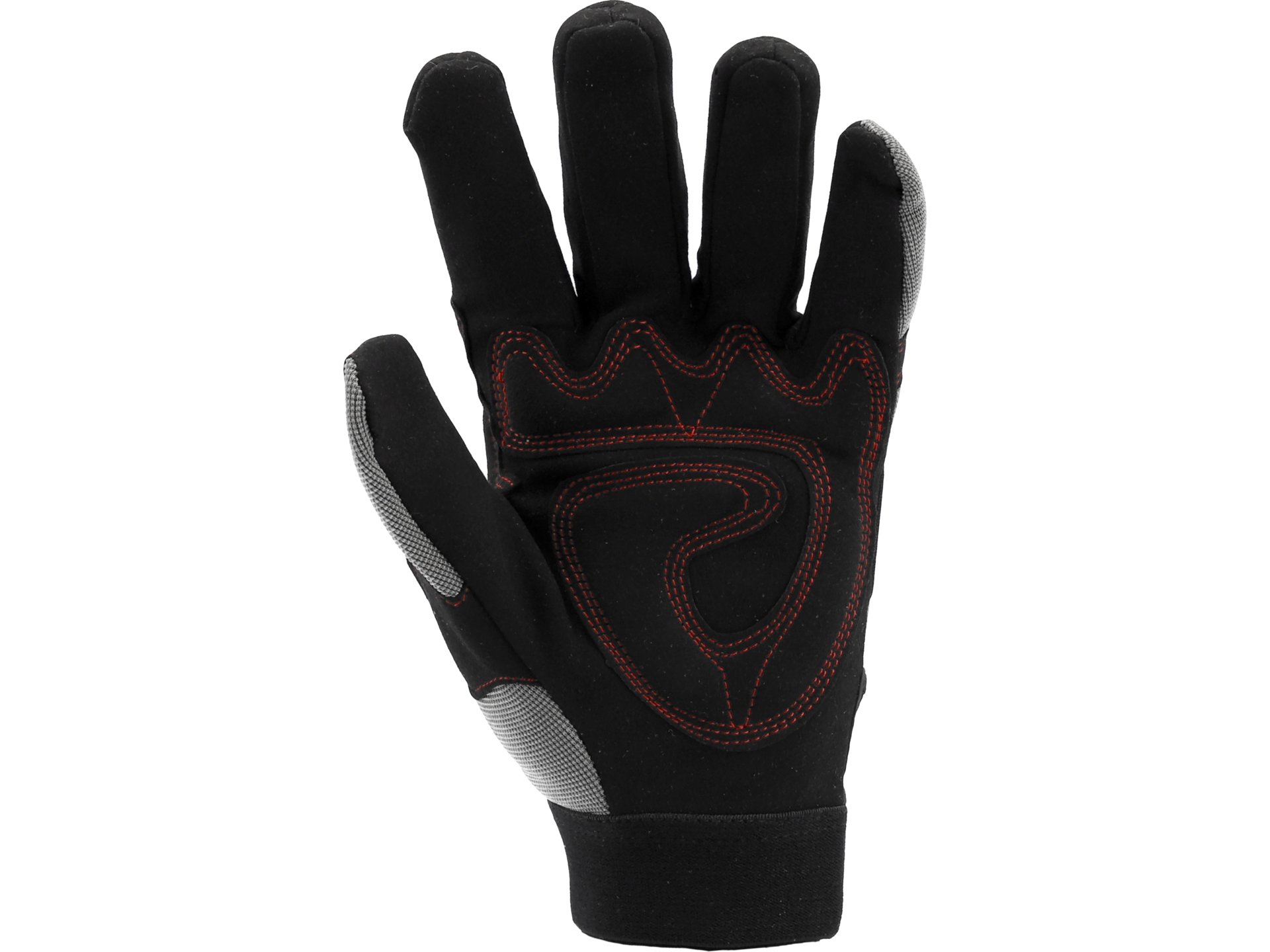 Rękawice ochronne z poduszkami antyodciskowymi, zaprojektowane do pracy z narzędziami udarowymi i ręcznymi. Konstrukcja łączy skórę syntetyczną w części chwytnej z dwuwarstwową tkaniną wierzchnią, co zapewnia odporność na ścieranie oraz redukcję zmęczenia dłoni podczas długotrwałych prac.