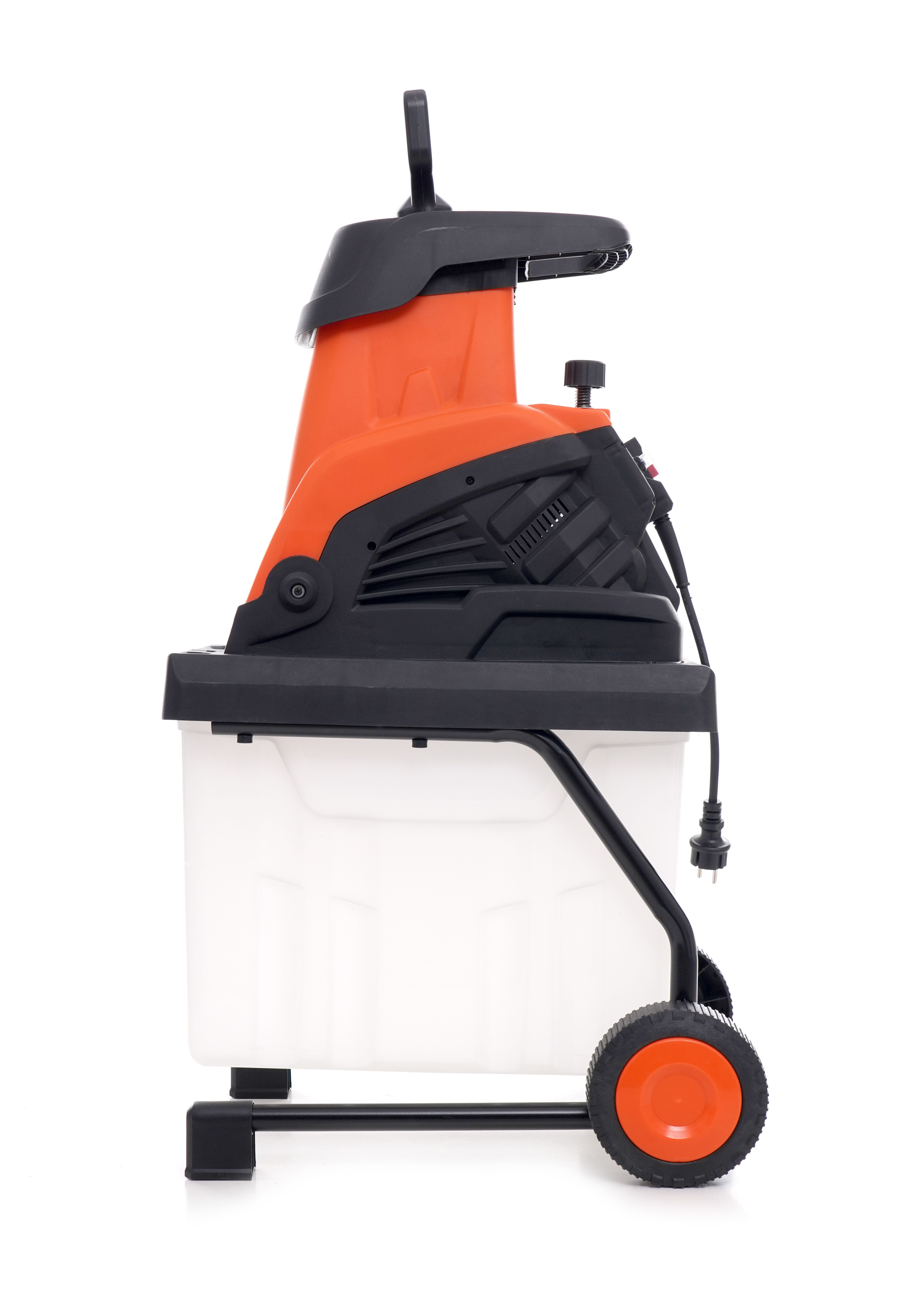 Wytrzymała obudowa chroni podzespoły, a zintegrowany kosz 50 l pozwala wygodnie zbierać i przenosić rozdrobniony materiał.
