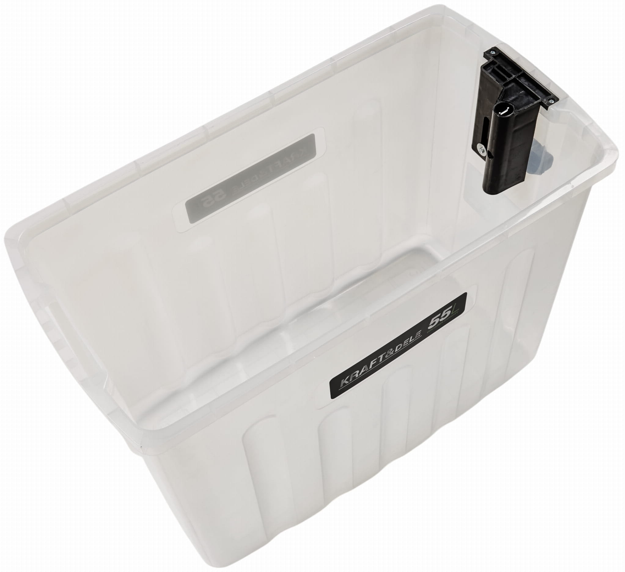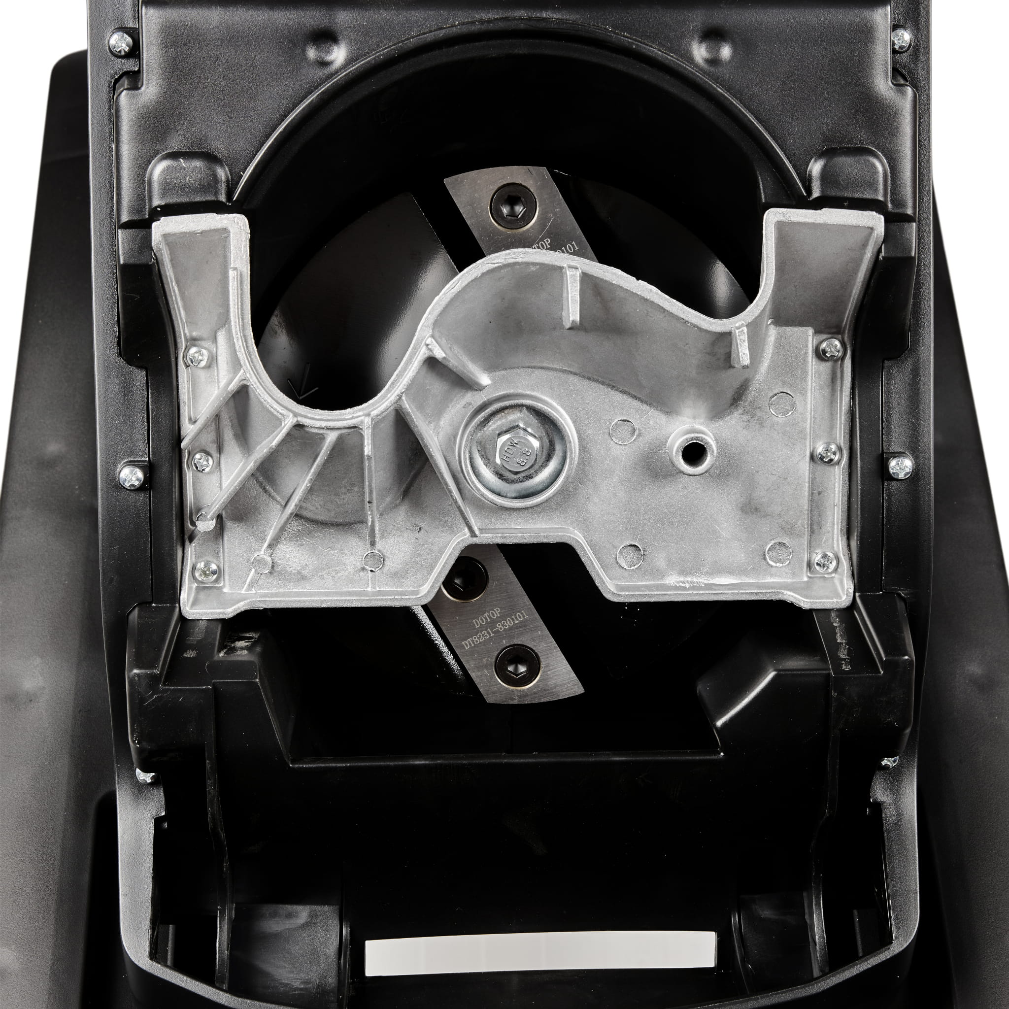 Kosz o pojemności 55 litrów zbiera zrębki bezpośrednio podczas pracy, eliminując rozsypywanie materiału. Pojemność wystarczy na zebranie znacznej ilości rozdrobnionego materiału przed koniecznością opróżnienia — co ogranicza przerwy w pracy.