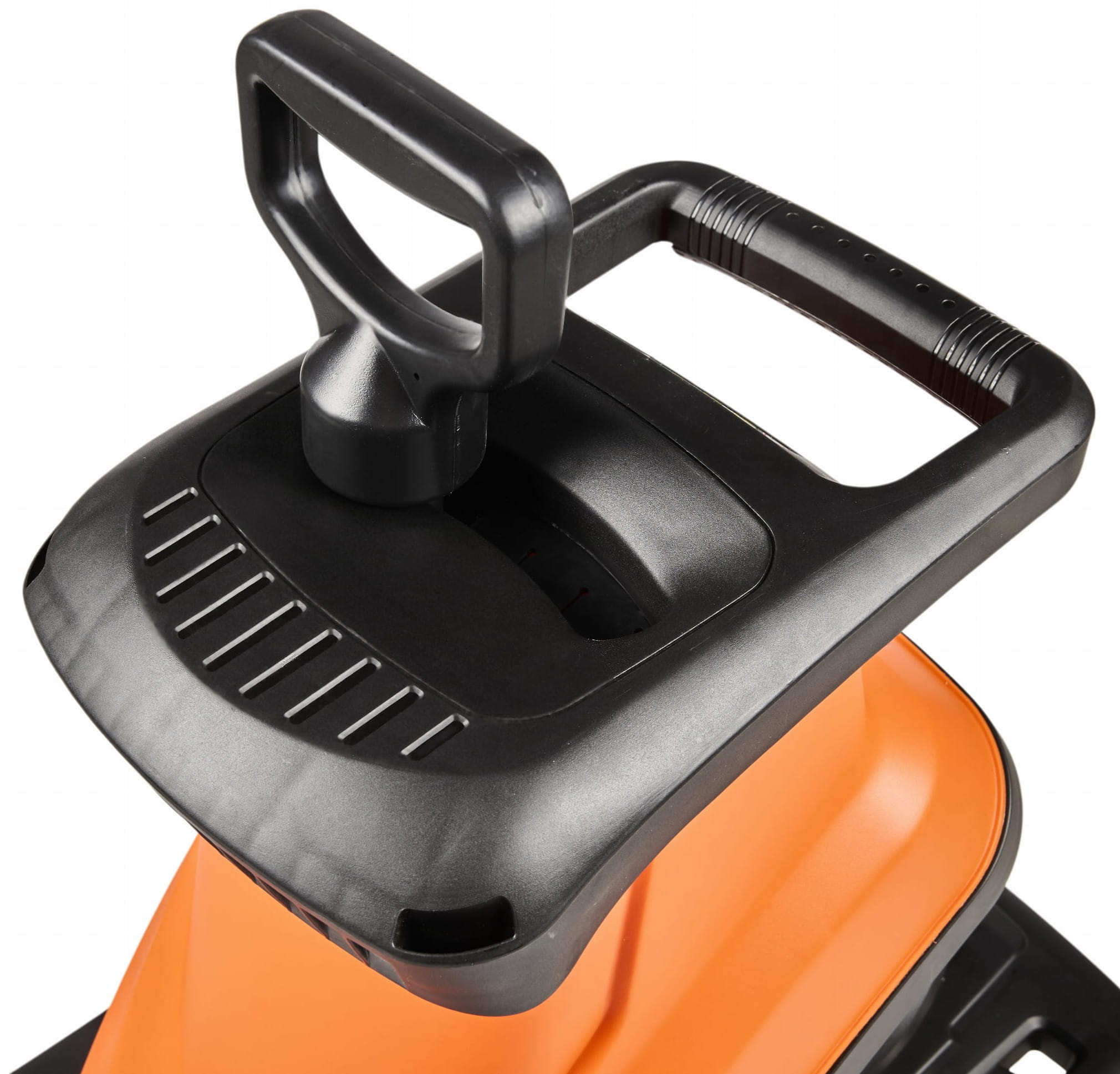 Metalowy stelaż z dużymi kółkami umożliwia przemieszczanie urządzenia po terenie ogrodu bez konieczności jego podnoszenia. Waga 14,2 kg przy tej klasie mocy pozwala na obsługę przez jedną osobę.