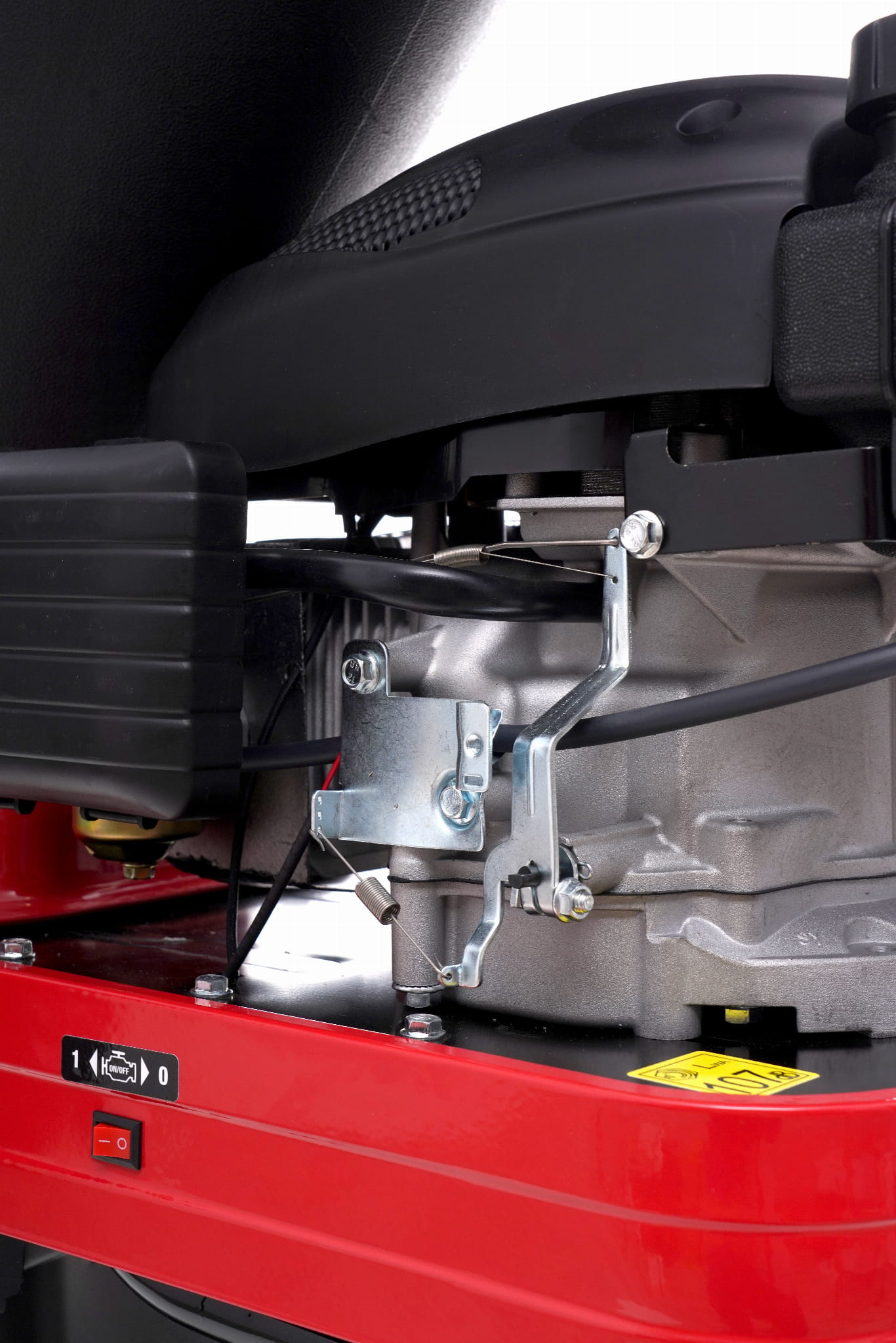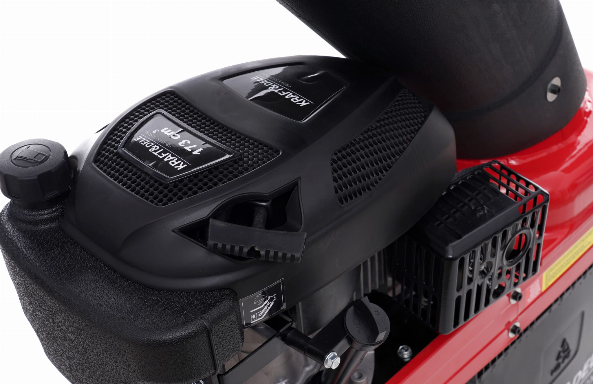 Konstrukcja oparta na metalowym stelażu zapewnia stabilność podczas pracy, a wbudowane kółka umożliwiają przesuwanie maszyny po działce bez konieczności jej podnoszenia. Istotne przy urządzeniu o masie 41kg.