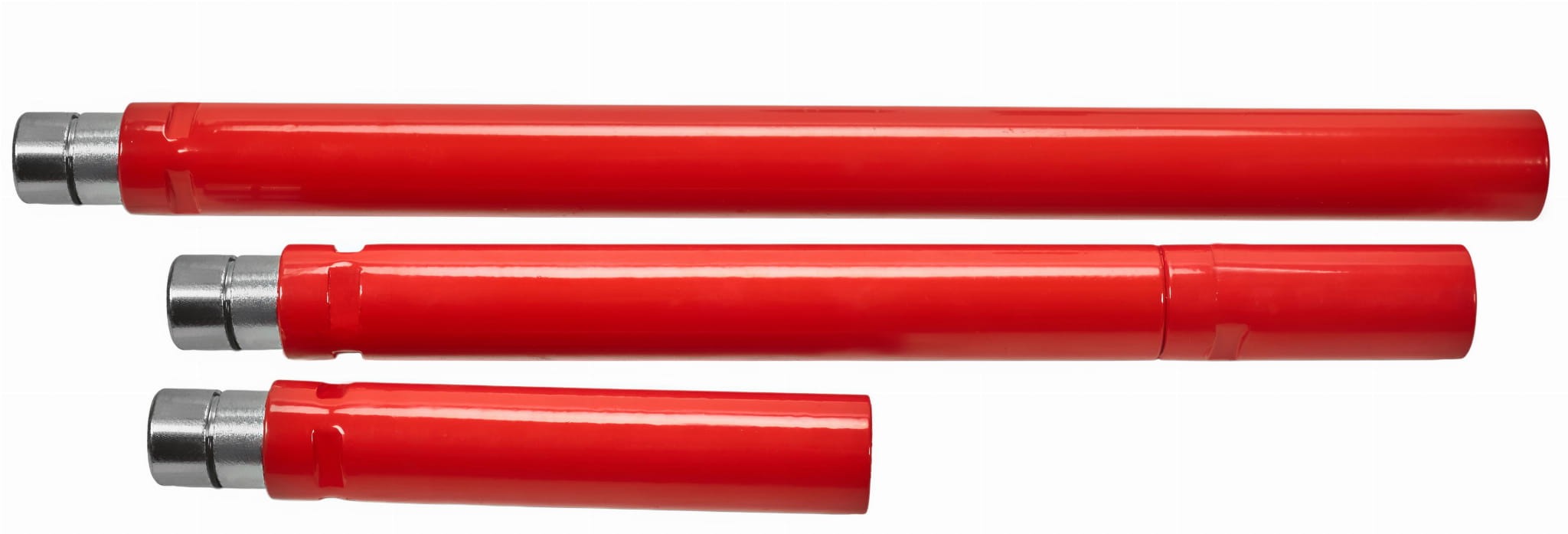 Cztery stalowe przedłużki o grubości ścianki 5 mm i średnicy 41 mm dostępne w długościach 16, 31, 41 i 56 cm pozwalają dostosować całkowity zasięg narzędzia do konkretnego zadania bez konieczności zmiany pozycji siłownika.