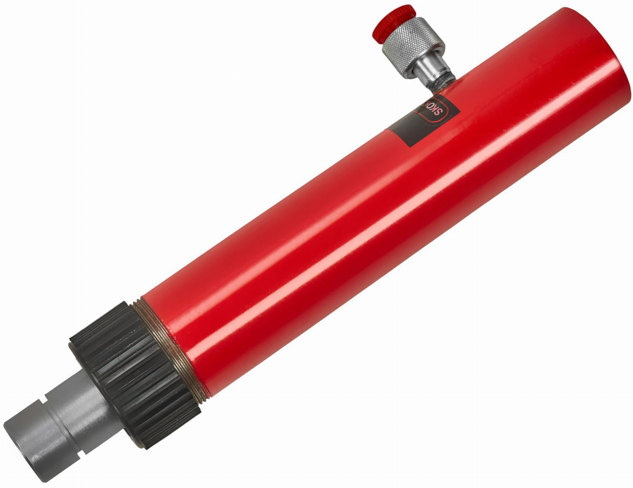 Pompa wyposażona w odpowietrznik i przewód zasilający jest oddzielona od cylindra roboczego. Dzięki temu operator może swobodnie pozycjonować siłownik w trudno dostępnych miejscach, a pompowanie odbywa się z wygodnej pozycji za pomocą dźwigni.