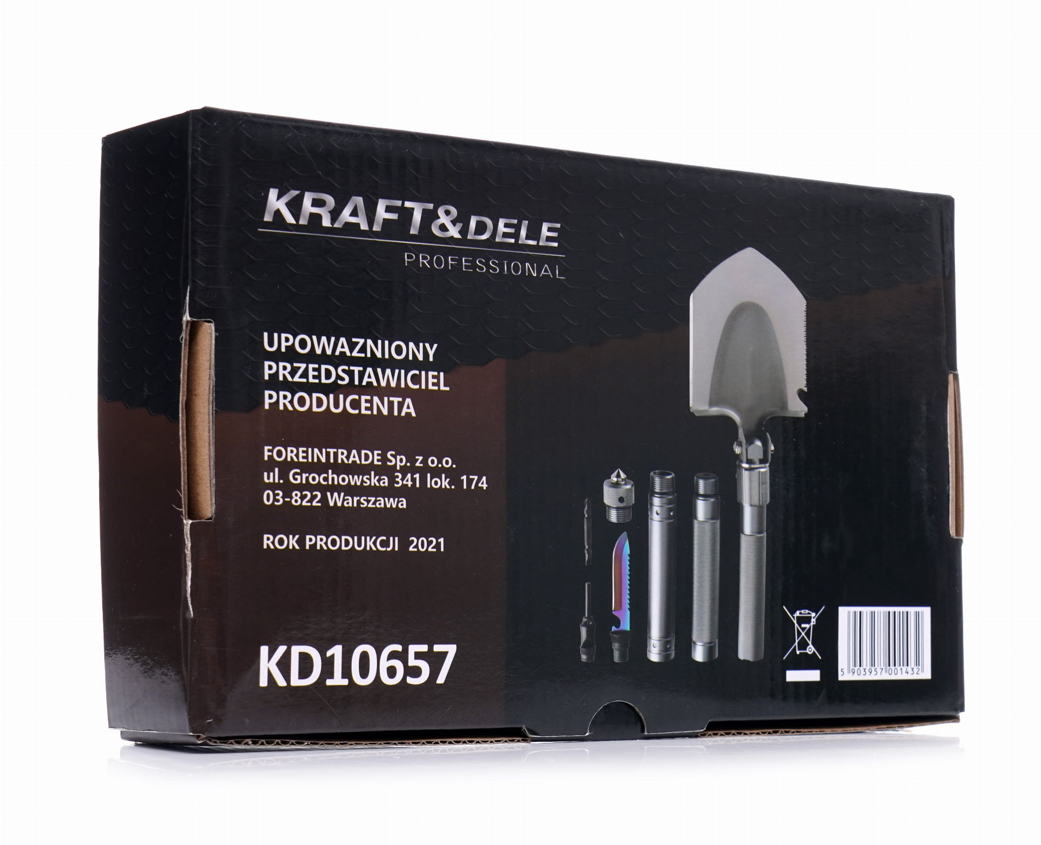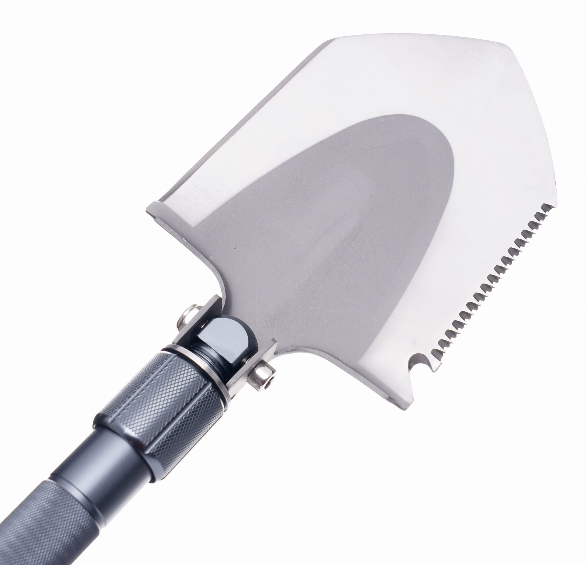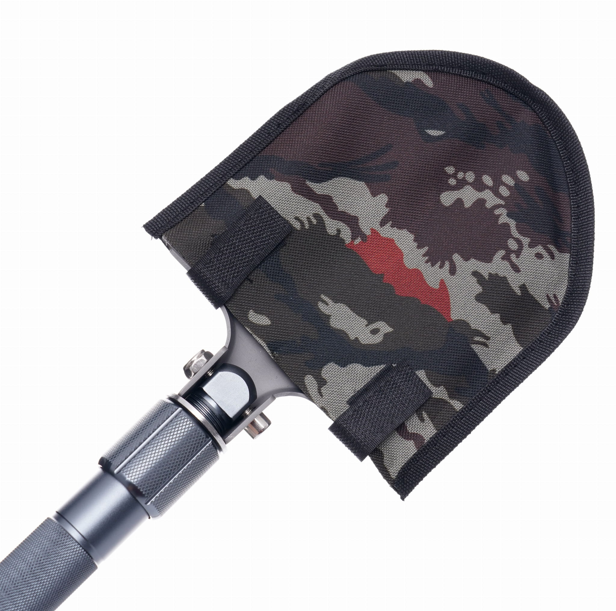 Składana łopata taktyczna z regulowaną głowicą i zestawem ponad 20 wymiennych narzędzi survivalowych. Korpus wykonany ze stali hartowanej, trzonek z aluminium klasy wojskowej — konstrukcja przeznaczona do użytku w wymagających warunkach terenowych.