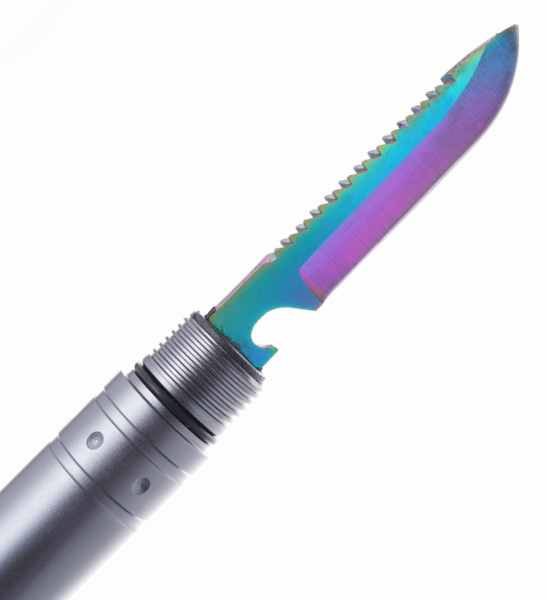 Trzonek pełni funkcję uchwytu dla wymiennych końcówek i akcesoriów. Zestaw obejmuje narzędzia tnące, montażowe, ratownicze i survivalowe, dzięki czemu zastępuje kilka oddzielnych przedmiotów ekwipunku.