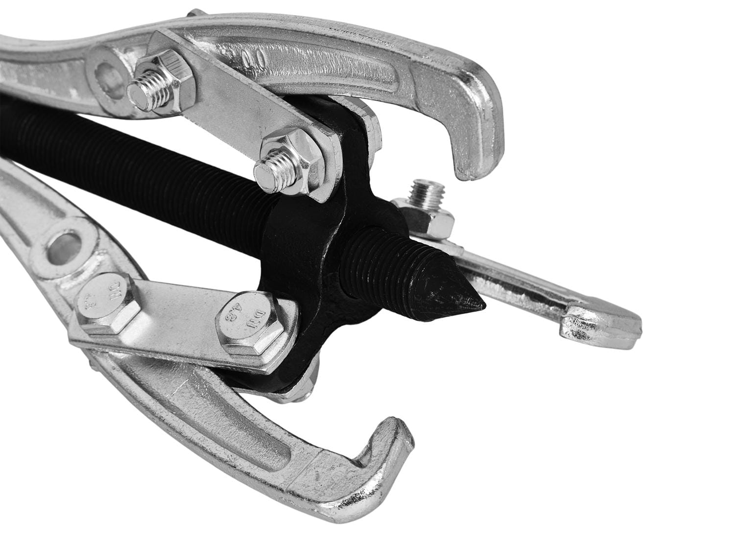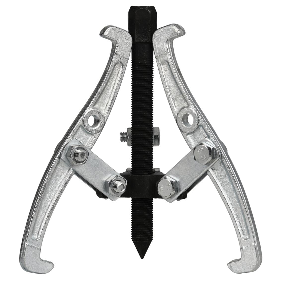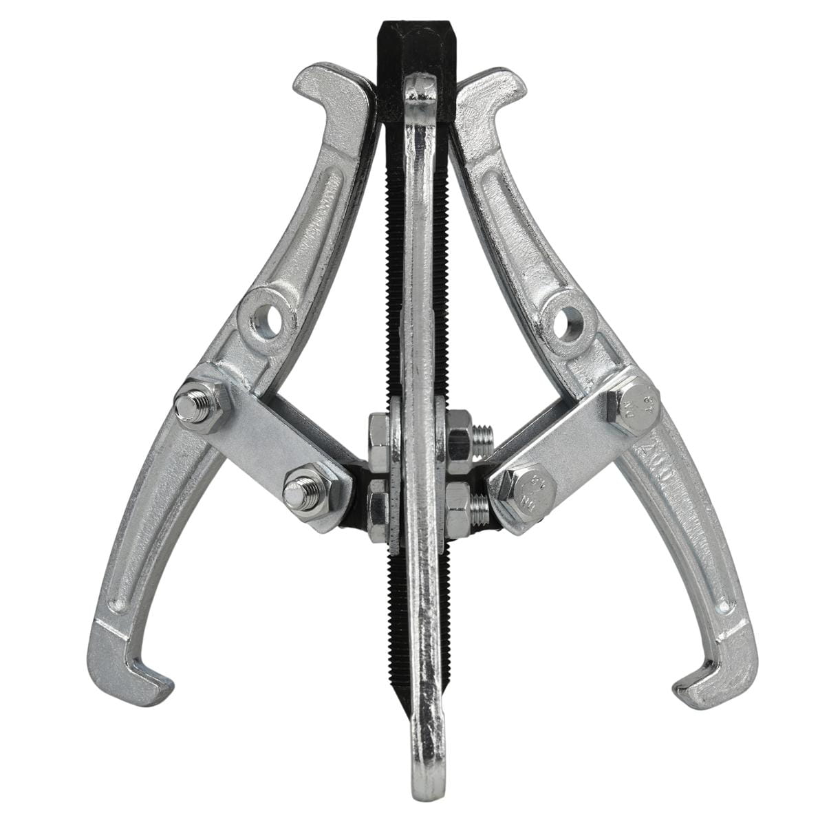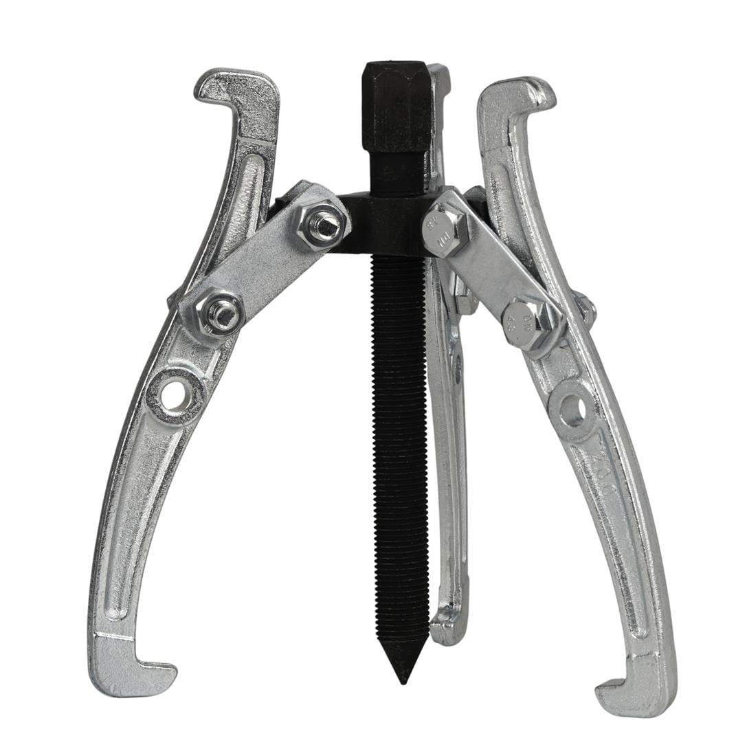 Układ trzech ramion rozstawionych równomiernie co 120° pozwala na centryczne przyłożenie siły do ściąganego elementu. W porównaniu do ściągaczy dwuramiennych trójramienny wariant lepiej sprawdza się przy elementach okrągłych — łożyskach i piastach — gdzie symetria obciążenia jest kluczowa dla bezpiecznego demontażu.