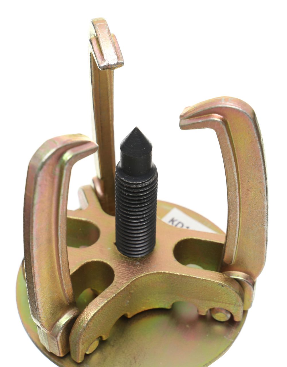 Ściągacz trójramienny z podstawą marki Kraft&Dele przeznaczony do mechanicznego demontażu elementów osadzonych na wałach — łożysk, kół pasowych, piast i innych części press-fit. Konstrukcja z trzema ramionami zapewnia równomierne rozłożenie siły ściągającej, co minimalizuje ryzyko uszkodzenia zarówno demontowanego elementu, jak i wału.