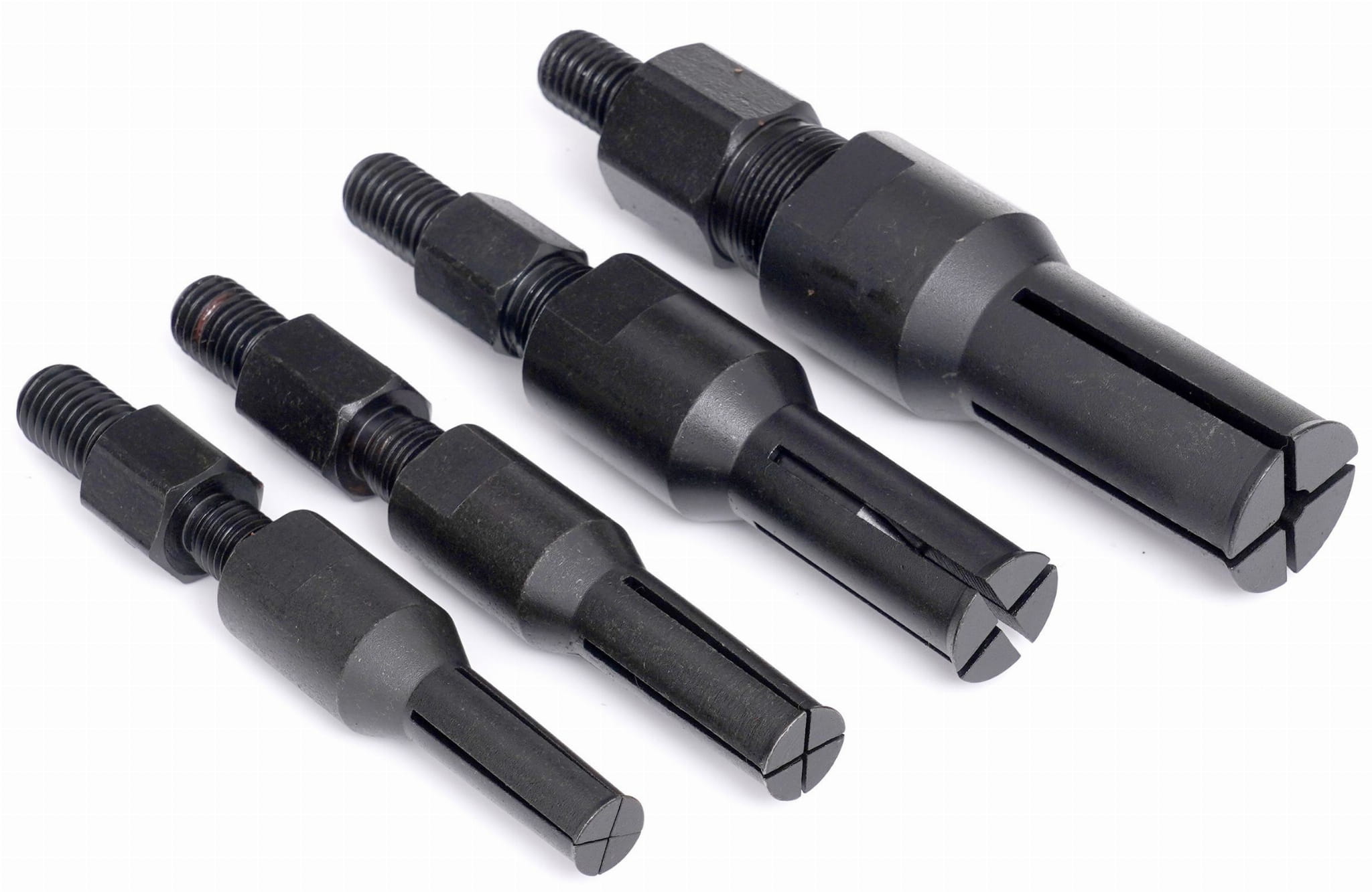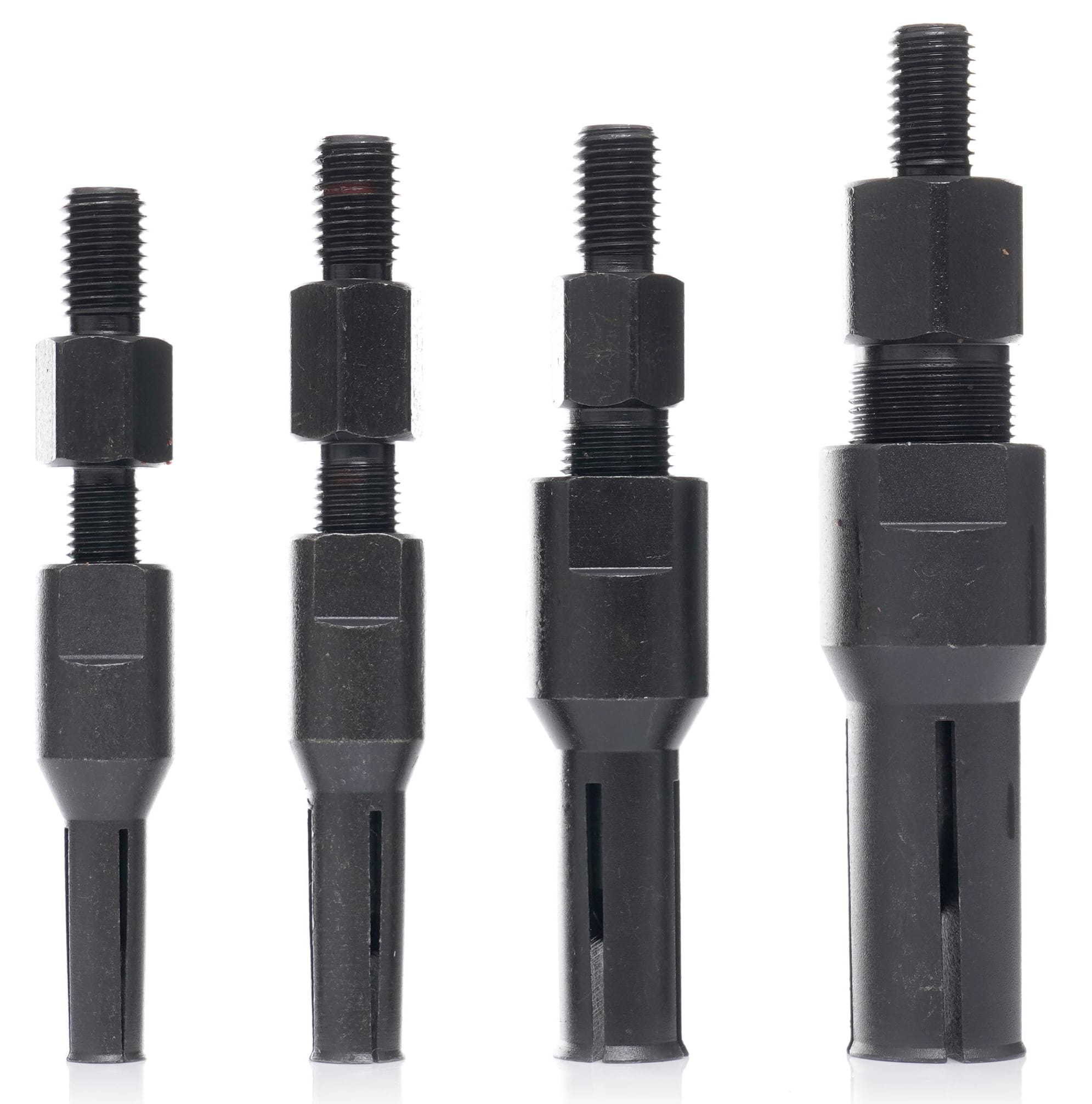 Zestaw zawiera ściągacze o zakresach: 10–14 cm, 15–19 cm, 18–25 cm oraz 25–32 cm. Dzięki temu jeden zestaw obsługuje szeroki przekrój łożysk wewnętrznych spotykanych w maszynach przemysłowych, pojazdach i urządzeniach warsztatowych. Przed użyciem należy dobrać ściągacz odpowiadający wewnętrznej średnicy łożyska.