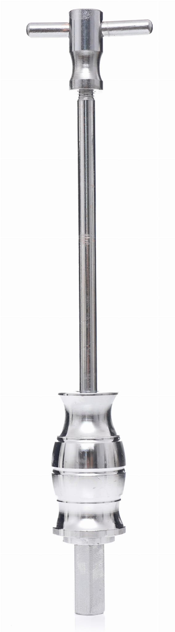 Siła wyciągająca generowana jest przez ruch przesuwnego ciężarka wzdłuż trzpienia młotka. Energia uderzenia przenoszona jest bezpośrednio na ściągacz osadzony w łożysku — bez konieczności podparcia zewnętrznego ani stosowania prasy. Metoda ta minimalizuje ryzyko uszkodzenia gniazda łożyska i otaczających elementów konstrukcji.