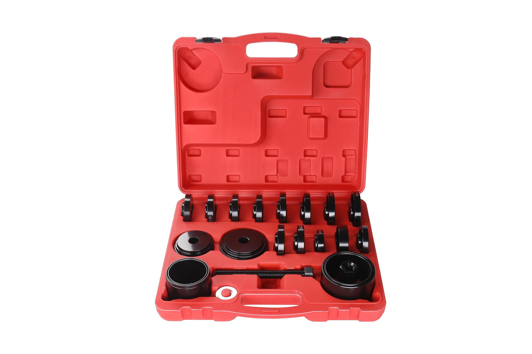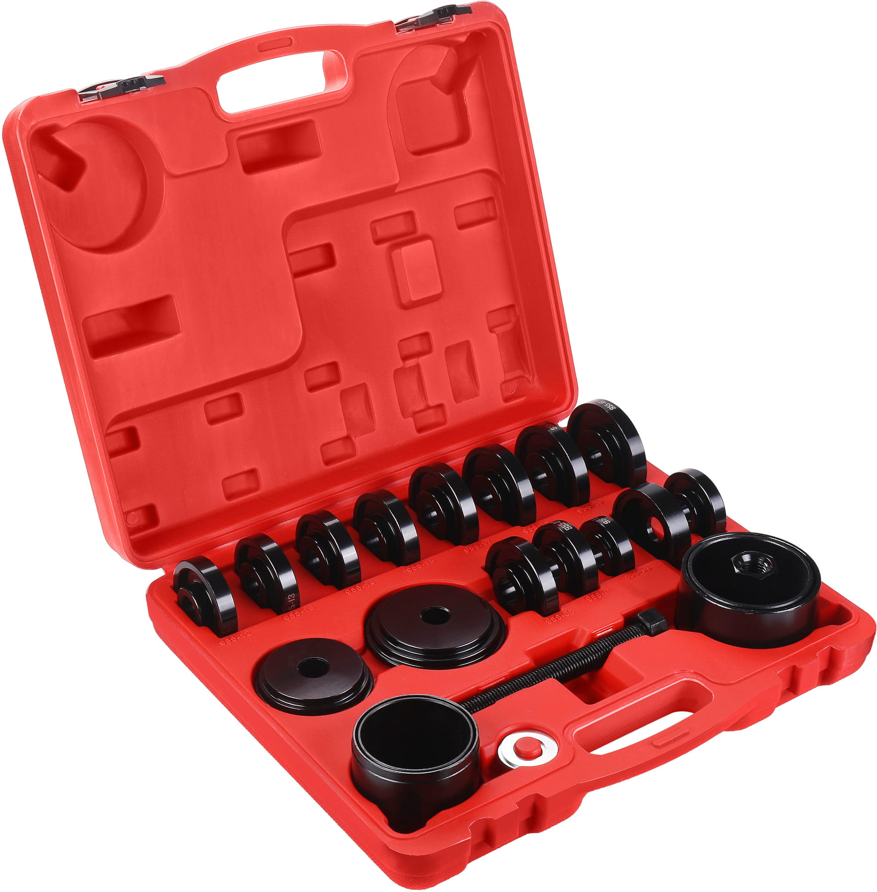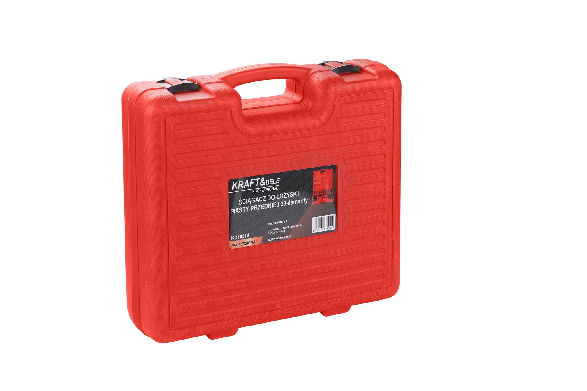 Wszystkie elementy zestawu przechowywane są w plastikowej walizce z formowanymi gniazdami. Ułatwia to organizację narzędzi, zapobiega zgubieniu pojedynczych części oraz umożliwia transport i przechowywanie zestawu w warunkach warsztatowych.