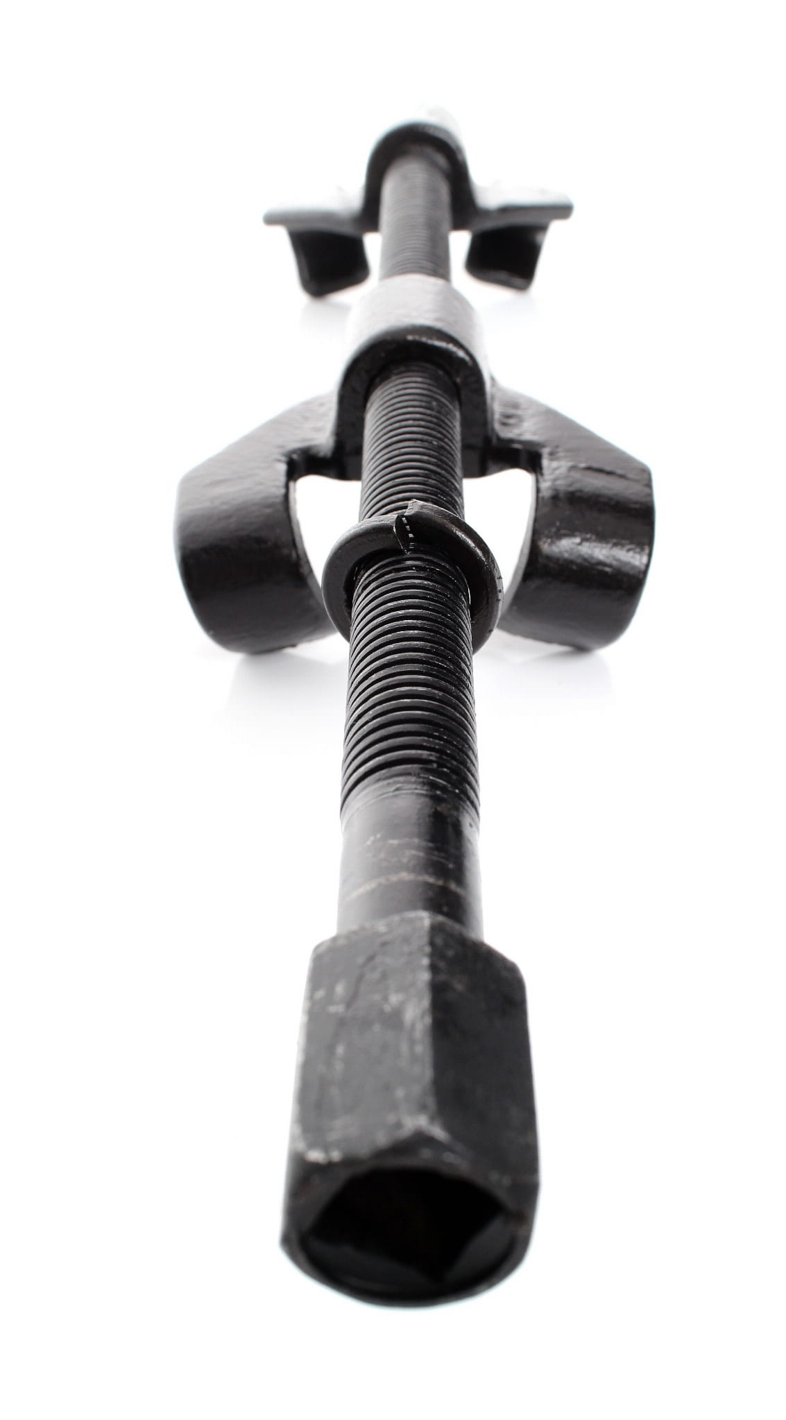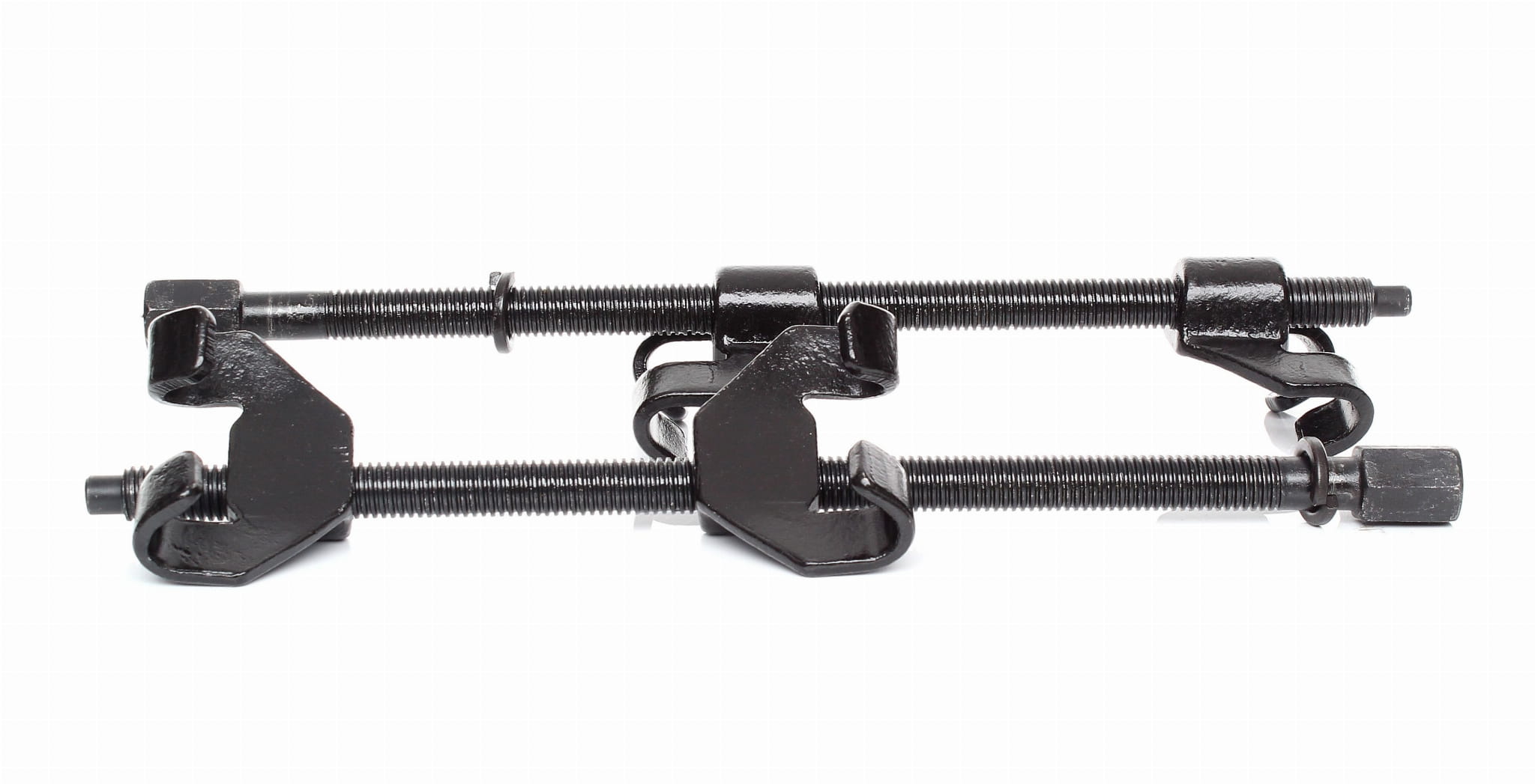 Zestaw dwóch ściągaczy umożliwia montaż po przeciwnych stronach sprężyny. Równoległe dokręcanie obu narzędzi na zmianę pozwala utrzymać równomierny nacisk i zapobiega bocznym odkształceniom sprężyny podczas ściskania.