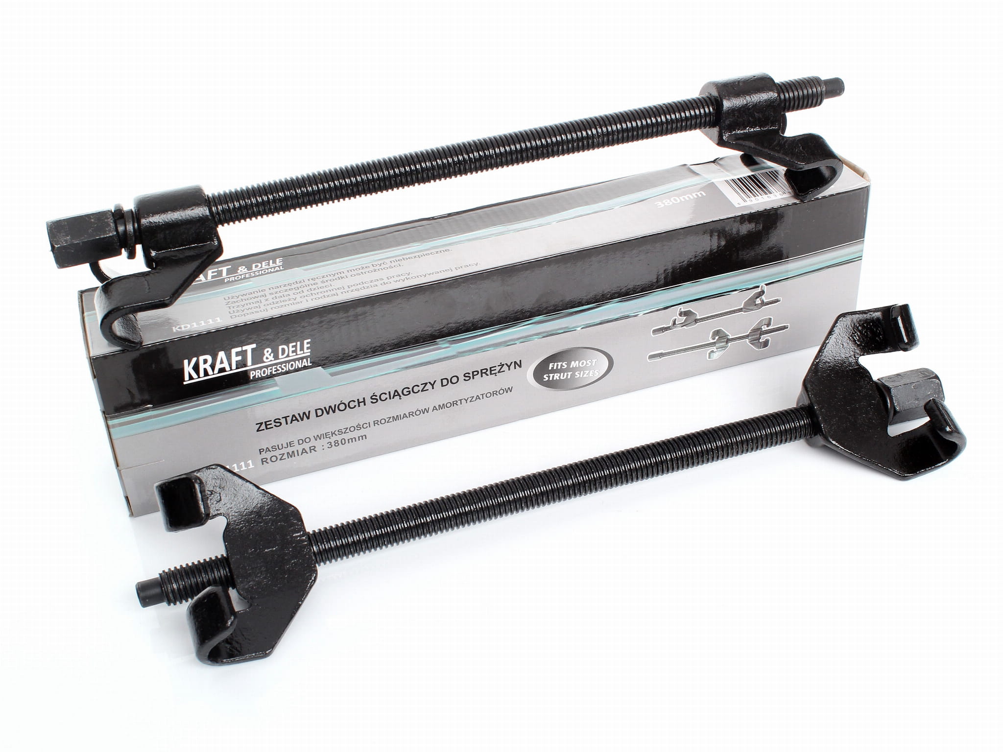 Długość 370 mm pozwala na obsługę sprężyn o typowych wymiarach stosowanych w zawieszeniach samochodów osobowych i lekkich dostawczych. Przed użyciem należy sprawdzić, czy długość ściągacza jest odpowiednia do skoku sprężyny w danym pojeździe.