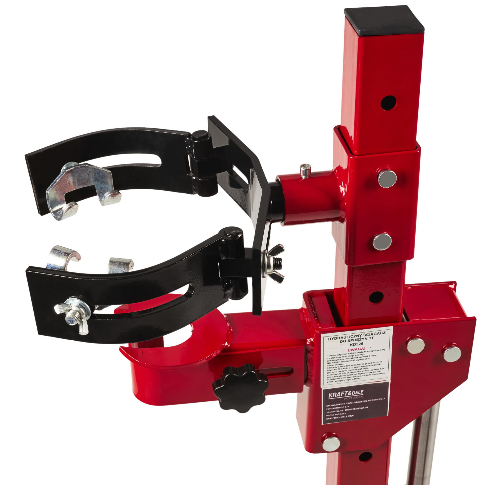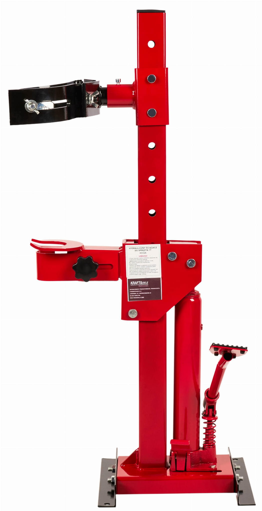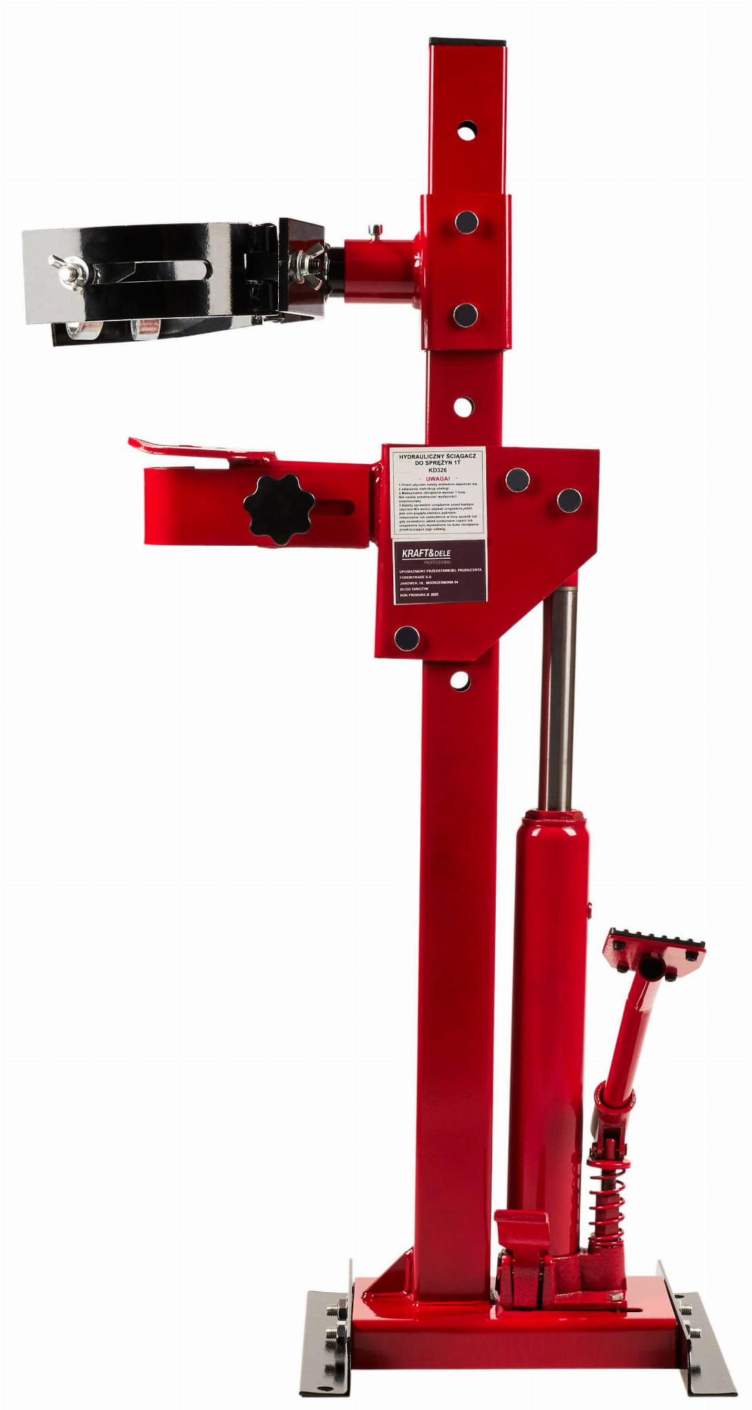 KD326 to stacjonarny, hydrauliczny ściągacz przeznaczony do ściskania sprężyn kolumn McPherson podczas ich montażu i demontażu. Urządzenie pracuje z udźwigiem do 1000 kg, a siłownik hydrauliczny sterowany nożnie eliminuje konieczność ręcznego wywierania nacisku na sprężynę pod obciążeniem.