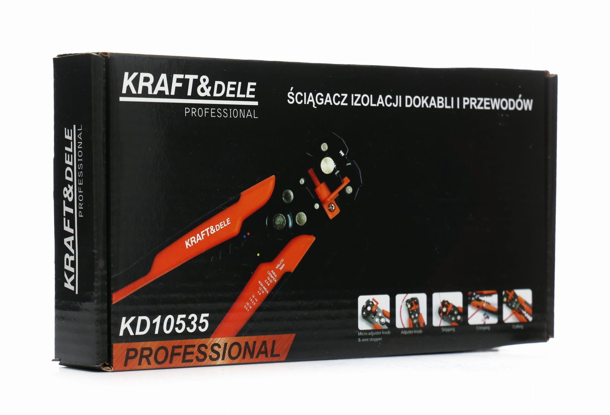 KD10535 to wielofunkcyjne narzędzie ręczne łączące trzy funkcje: ściąganie izolacji z przewodów, cięcie kabli oraz zaciskanie końcówek kablowych. Automatyczny mechanizm dopasowania do przekroju eliminuje konieczność ręcznej regulacji przy każdej zmianie przewodu, co przyspiesza pracę przy większej liczbie połączeń.