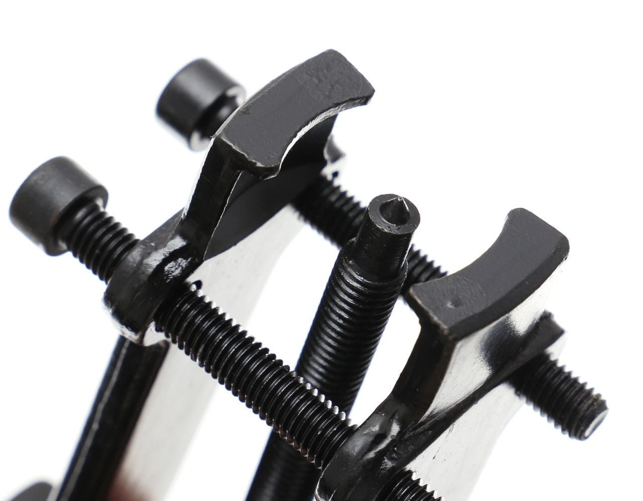 Narzędzie obsługuje łożyska osadzone w gniazdach o średnicy wewnętrznej od 19 do 35 mm. Przed użyciem należy zmierzyć średnicę gniazda, aby potwierdzić, że mieści się w tym przedziale — zbyt małe lub zbyt duże łożysko wymaga ściągacza o innym zakresie.