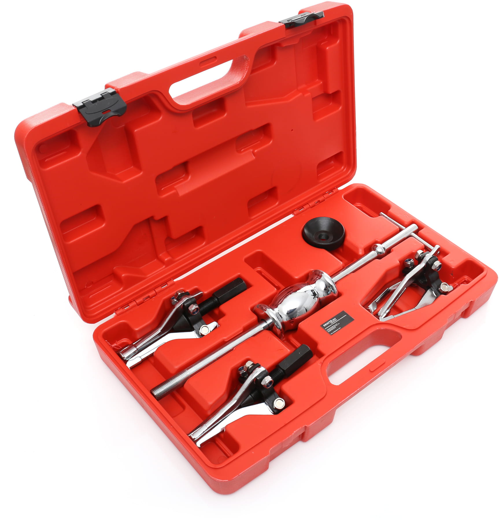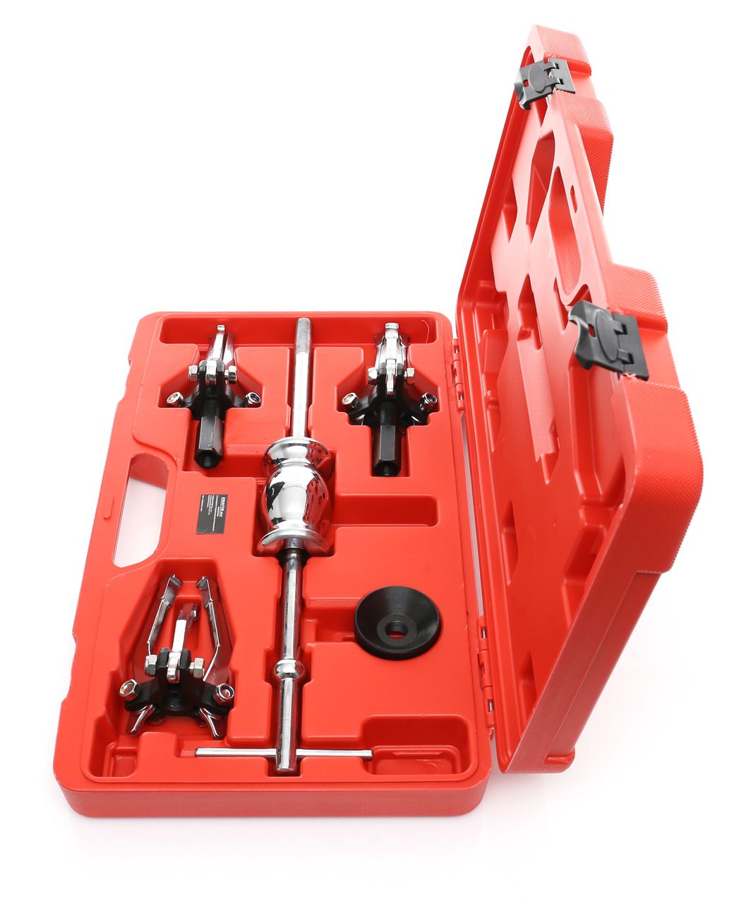Zestaw narzędzi do demontażu łożysk wewnętrznych osadzonych w obudowach, piastach i innych elementach konstrukcyjnych. Przeznaczony do zastosowań warsztatowych, gdzie standardowe ściągacze zewnętrzne nie mają dostępu do powierzchni łożyska. Zestaw składa się z 6 elementów i jest dostarczany w walizce transportowej.