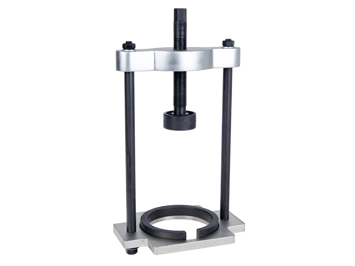 Rama i elementy robocze wykonane są ze stali hartowanej, odpornej na wysokie siły ściskające generowane podczas wciskania tulei. Materiał zapewnia trwałość przy intensywnym użytkowaniu w warunkach serwisowych oraz odporność na korozję.