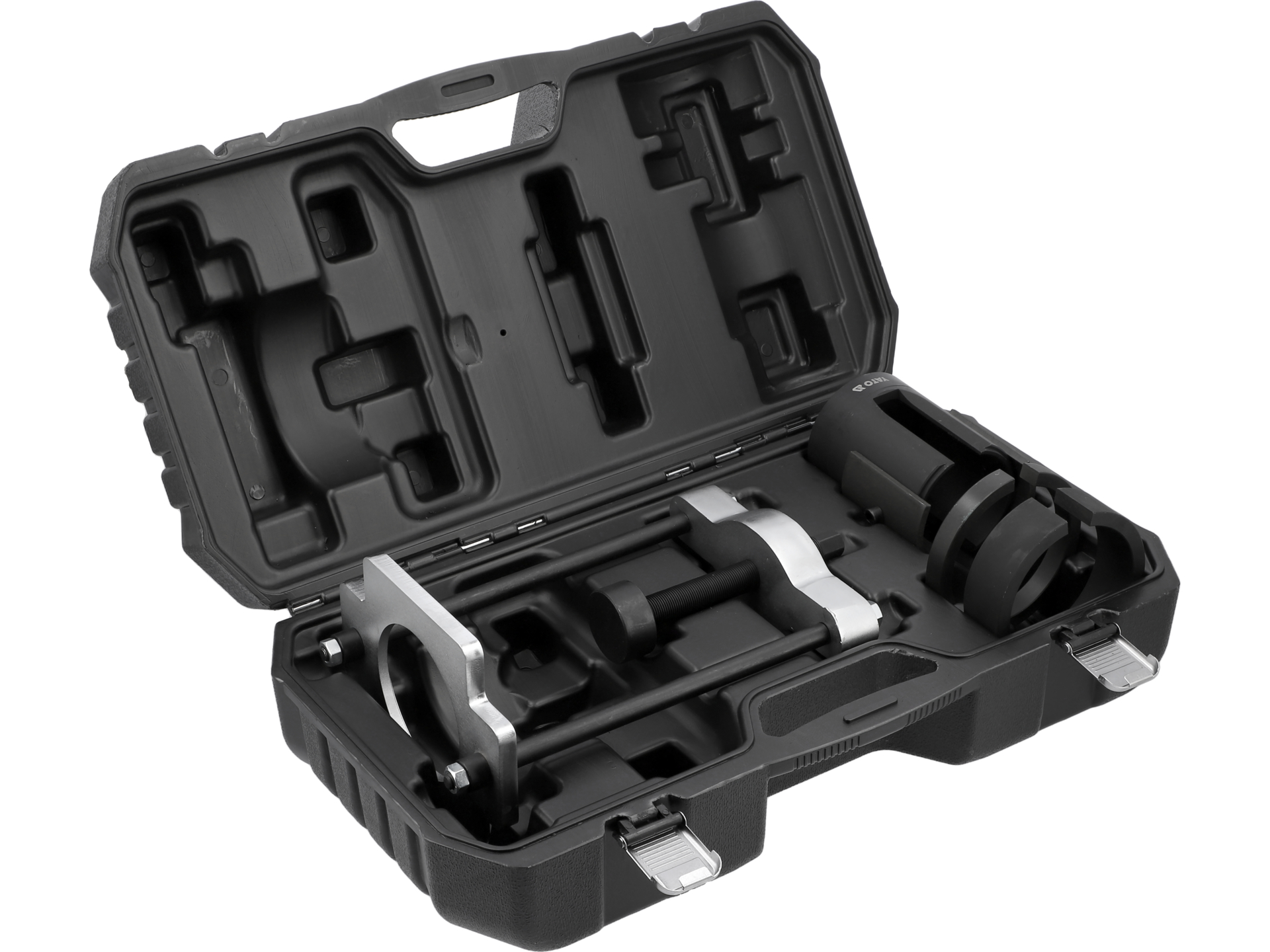 Specjalistyczne narzędzie warsztatowe do demontażu i montażu tulei wahacza w pojazdach Ford i Volvo bez konieczności demontażu całego wahacza. Zestaw dedykowany do modeli produkowanych od 2006/2007 roku.