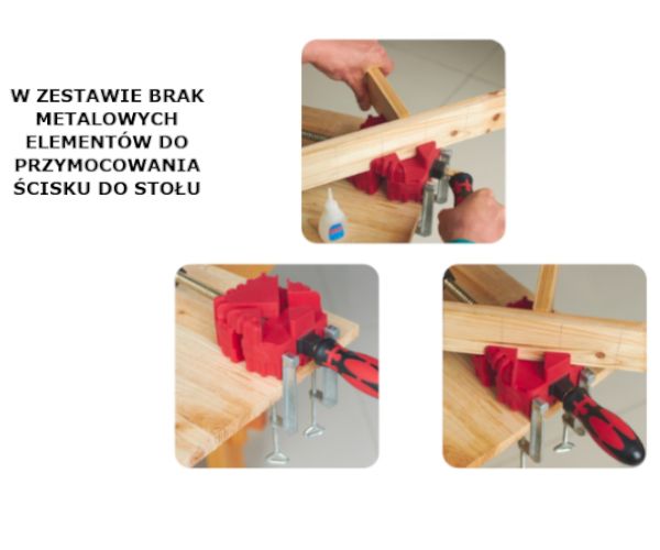 Ścisk narożnikowy ułatwia utrzymanie elementów w stałej pozycji, co przekłada się na równe spasowanie.