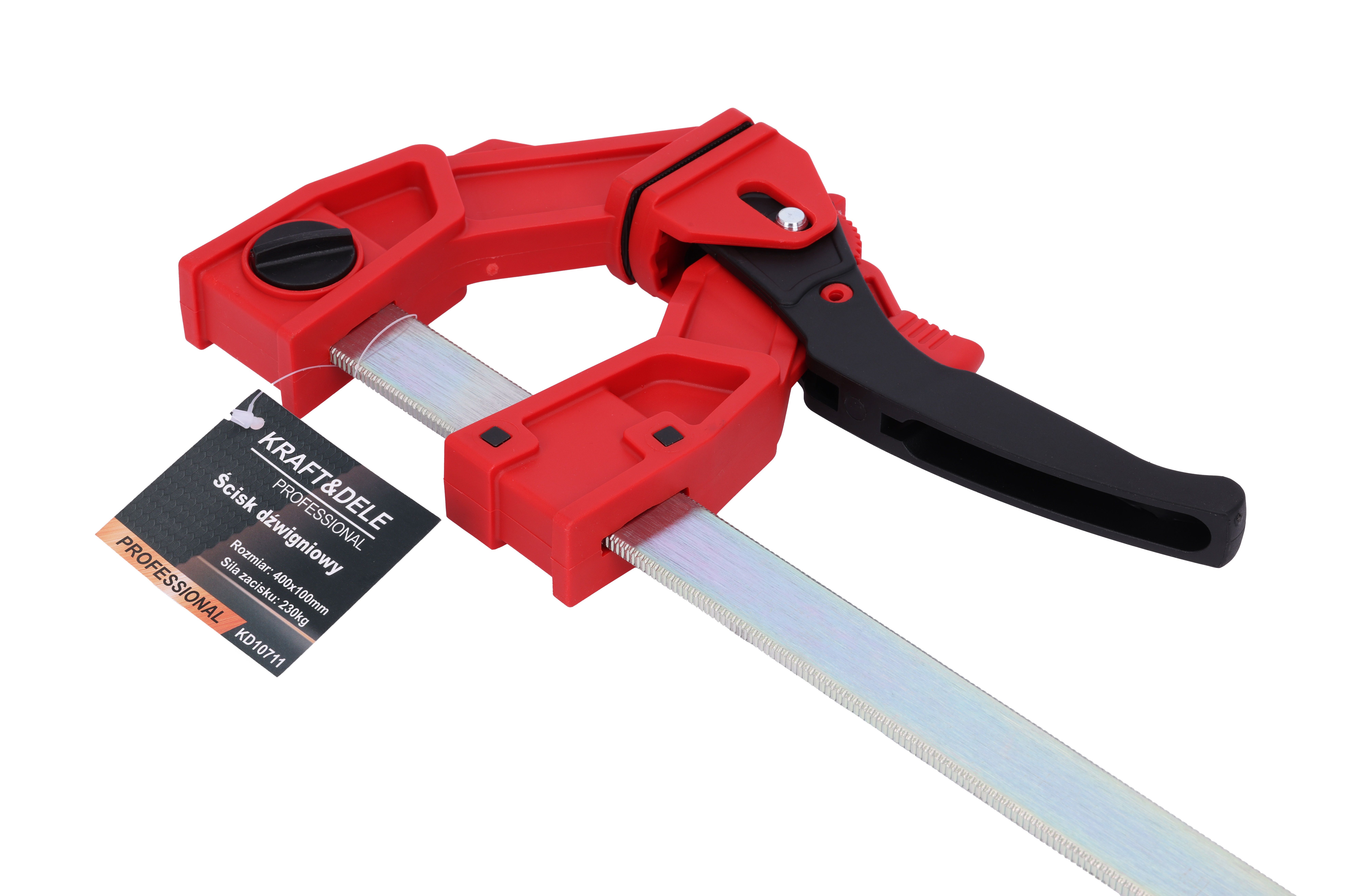 Ścisk stolarski 230kg - 400 x 100 mm KD10711 / KD10711 / KRAFT&DELE to solidnie wykonany ścisk stolarski z szybkim przesuwem i ochronnymi nakładkami na szczęki. Jeśli szukasz praktycznego narzędzia do pewnego docisku oraz opcji pracy jako rozpierak, model KD10711 będzie rozsądnym wyborem do codziennych zadań.