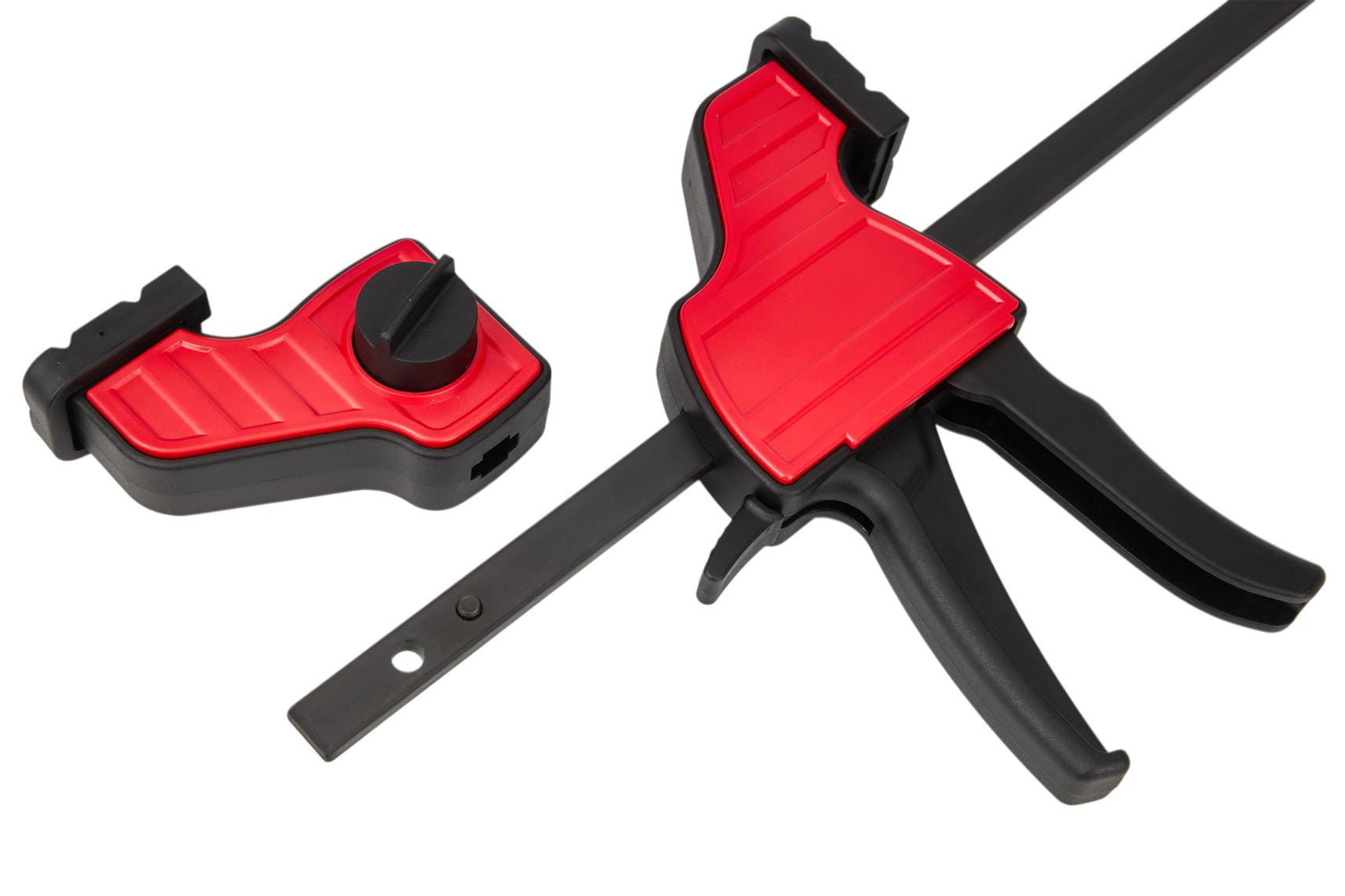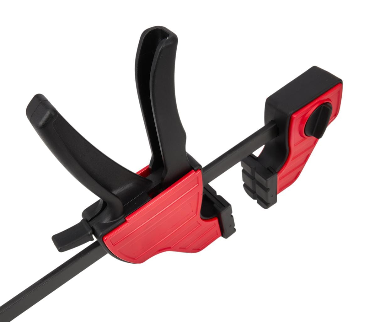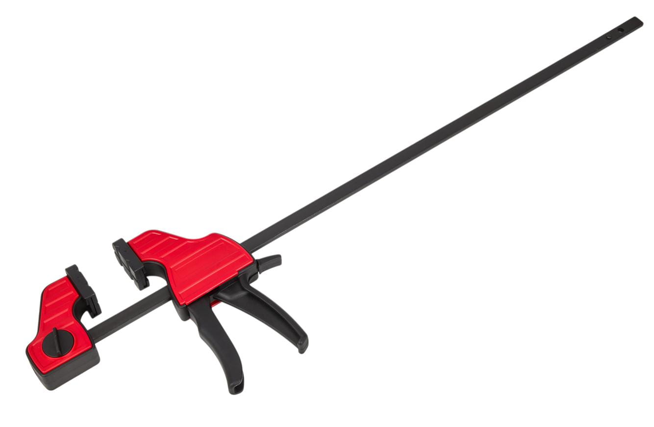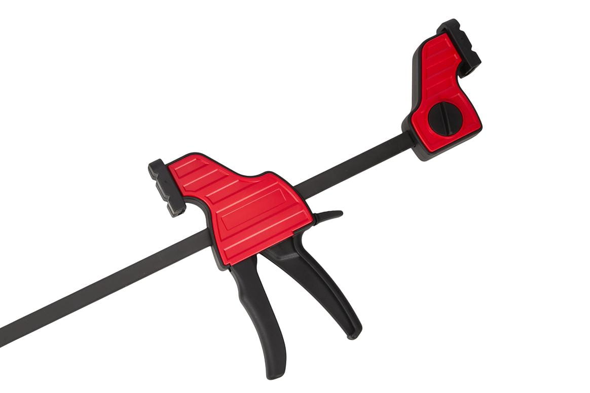 Ruchoma szczęka przesuwa się swobodnie wzdłuż prowadnicy bez konieczności obracania śruby dociskowej. Umożliwia to szybkie ustawienie wstępnego rozstawu jedną ręką, co jest istotne podczas pracy z wieloma elementami lub przy klejeniu wymagającym sprawnego działania przed związaniem kleju.