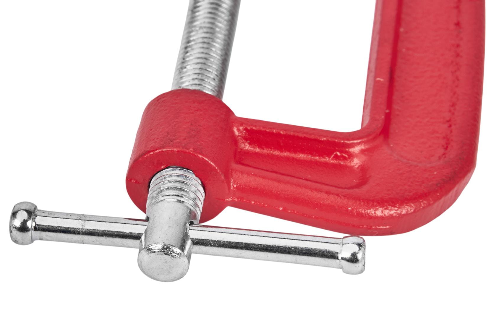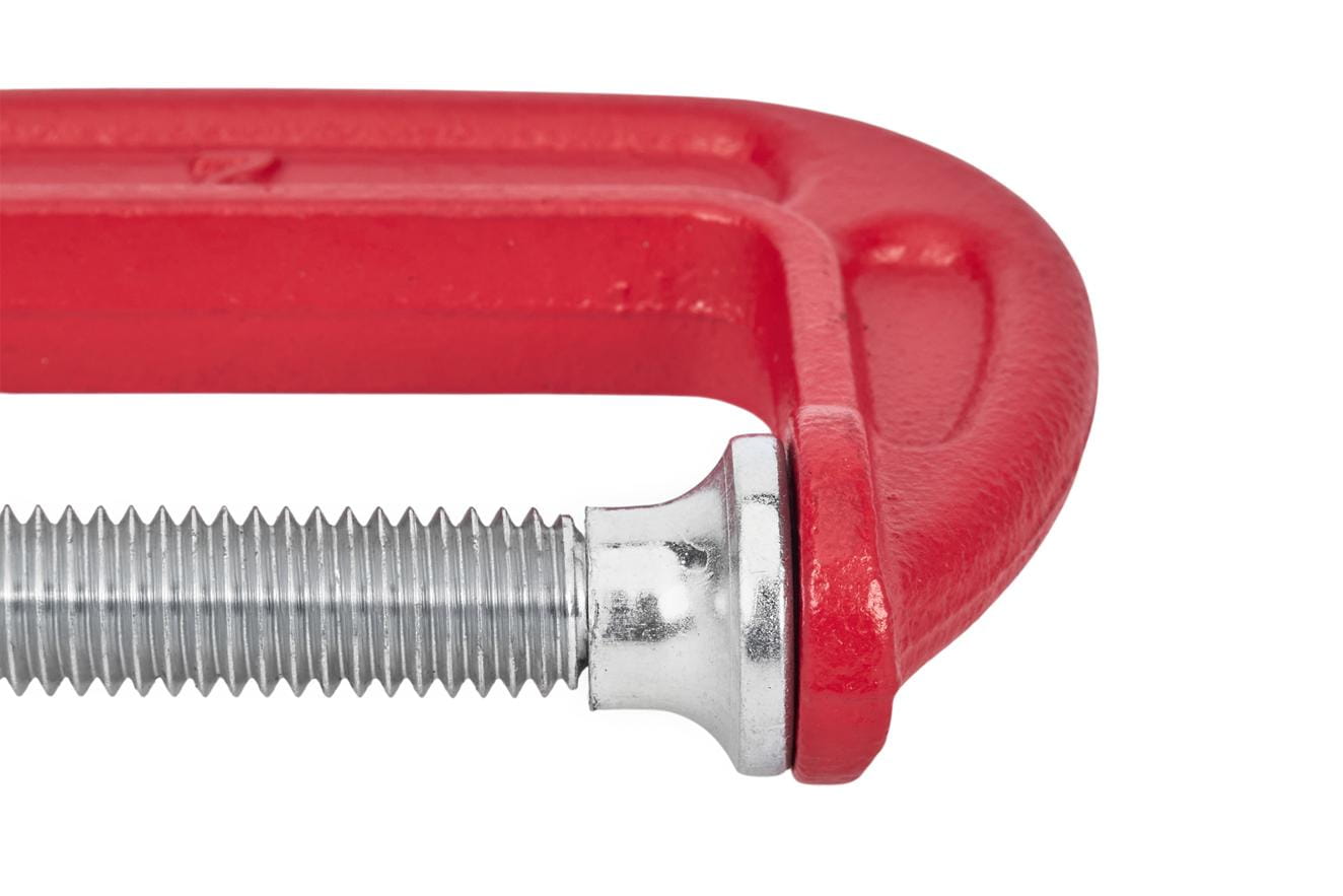 Konstrukcja ścisku typu G jest uniwersalna — sprawdza się zarówno przy pracy z drewnem, jak i z metalem. Kształt litery G zapewnia stabilne oparcie na krawędzi stołu warsztatowego lub obrabianego elementu.