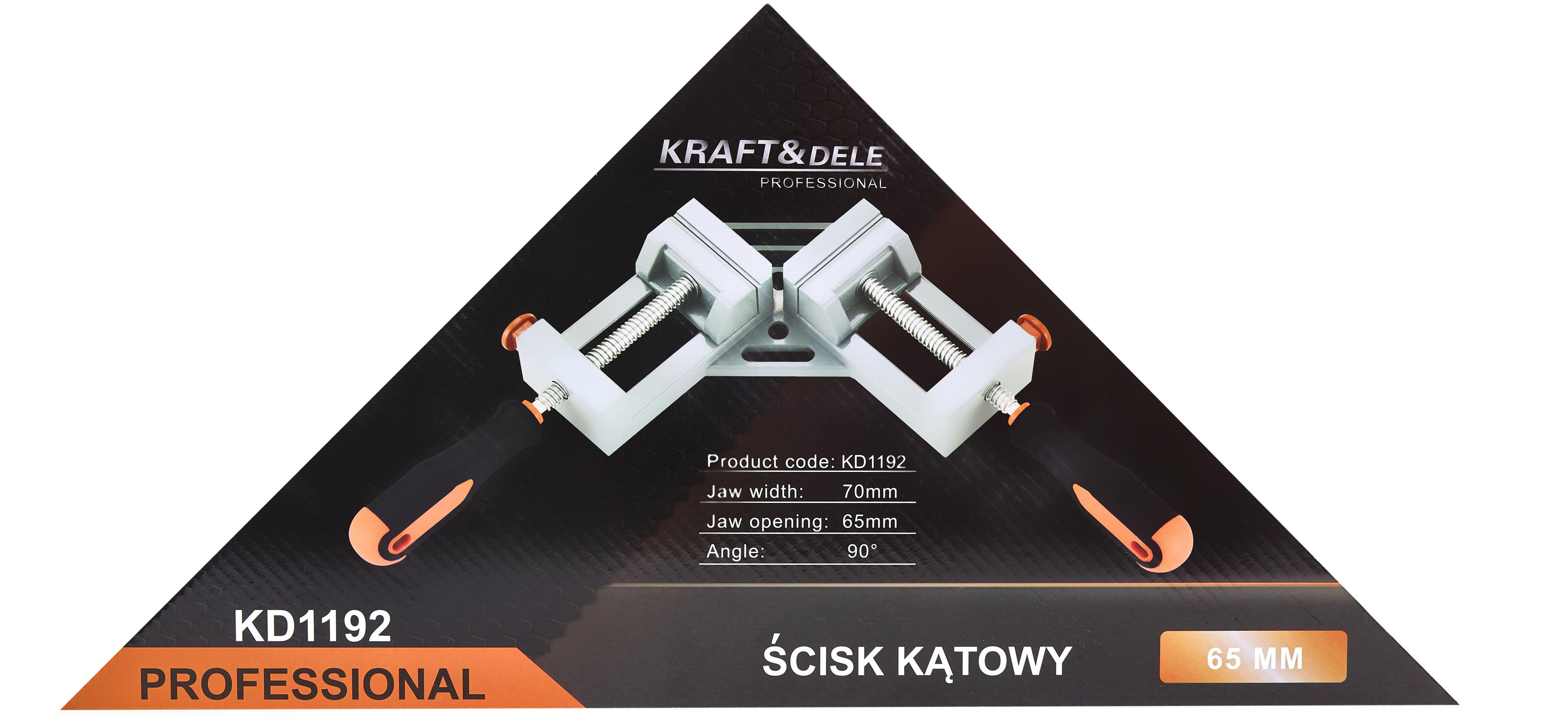 Ścisk stolarski kątowy 65mm KD1192 / KD1192 / KRAFT&DELE to solidny ścisk stolarski kątowy do precyzyjnego łączenia pod kątem 90°. Jeśli potrzebujesz narzędzia do klejenia ram, składania skrzynek lub montażu w warsztacie, model KD1192 pozwala pracować szybciej i bardziej powtarzalnie, z kontrolą nad dociskiem.