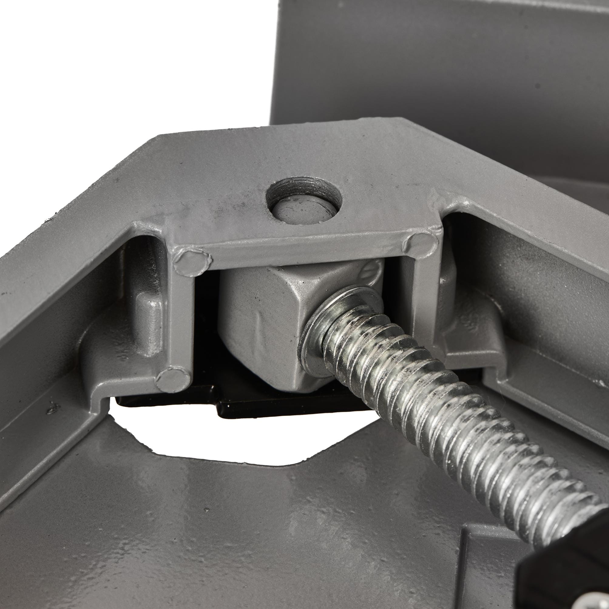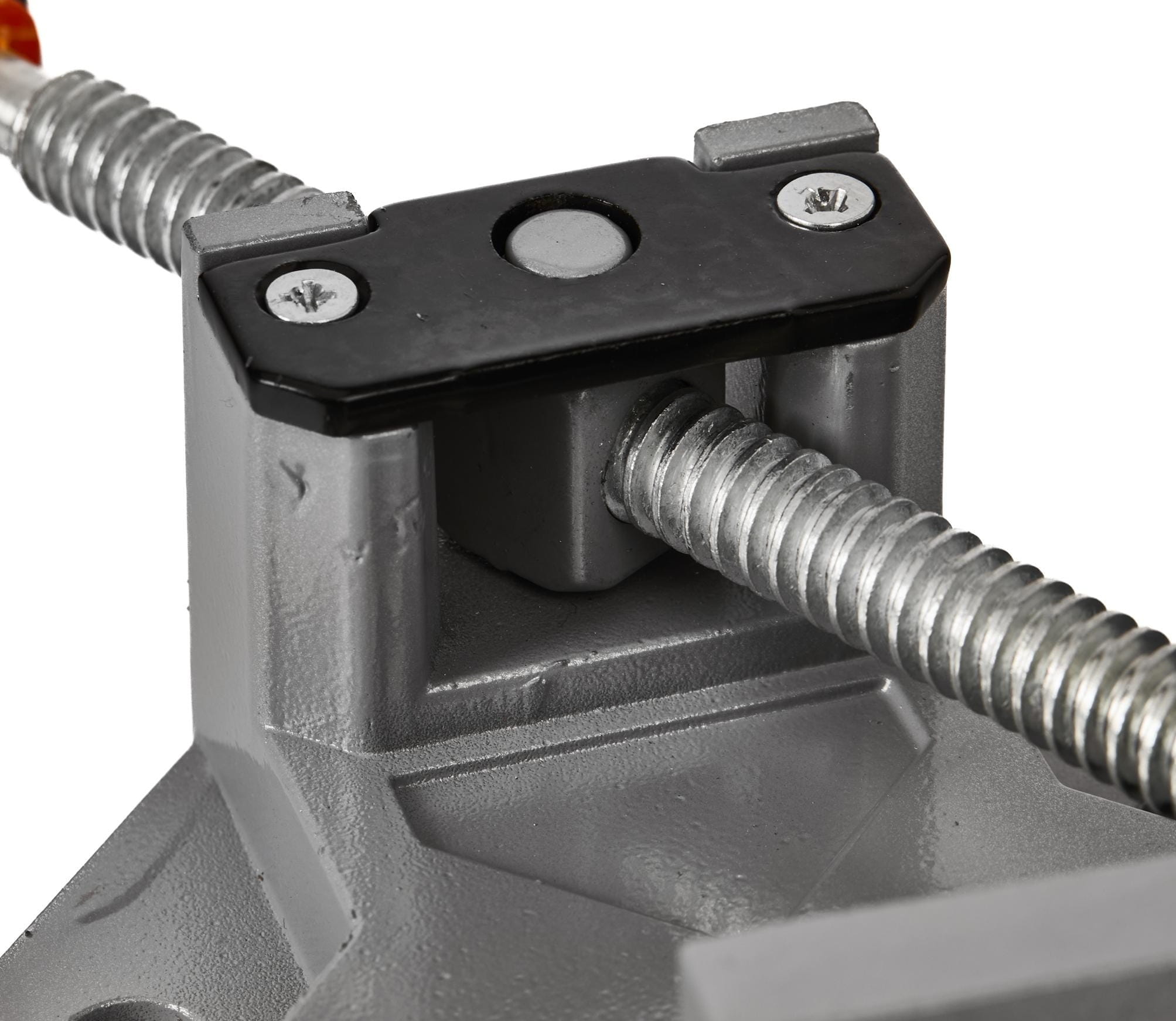 Korpus posiada otwory umożliwiające przykręcenie ścisku do blatu warsztatowego lub przyrządu montażowego. Rozwiązanie przydatne przy powtarzalnych operacjach wymagających stałego ustawienia kąta.