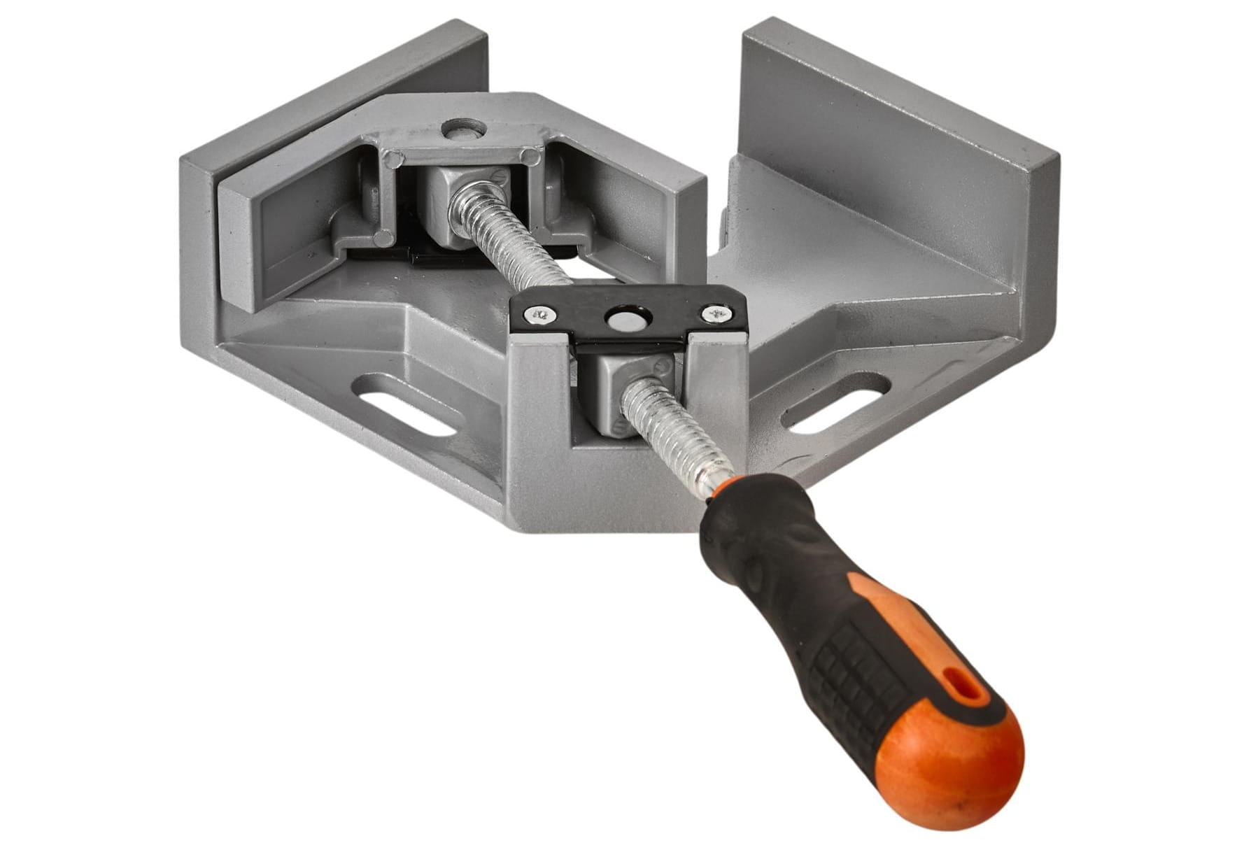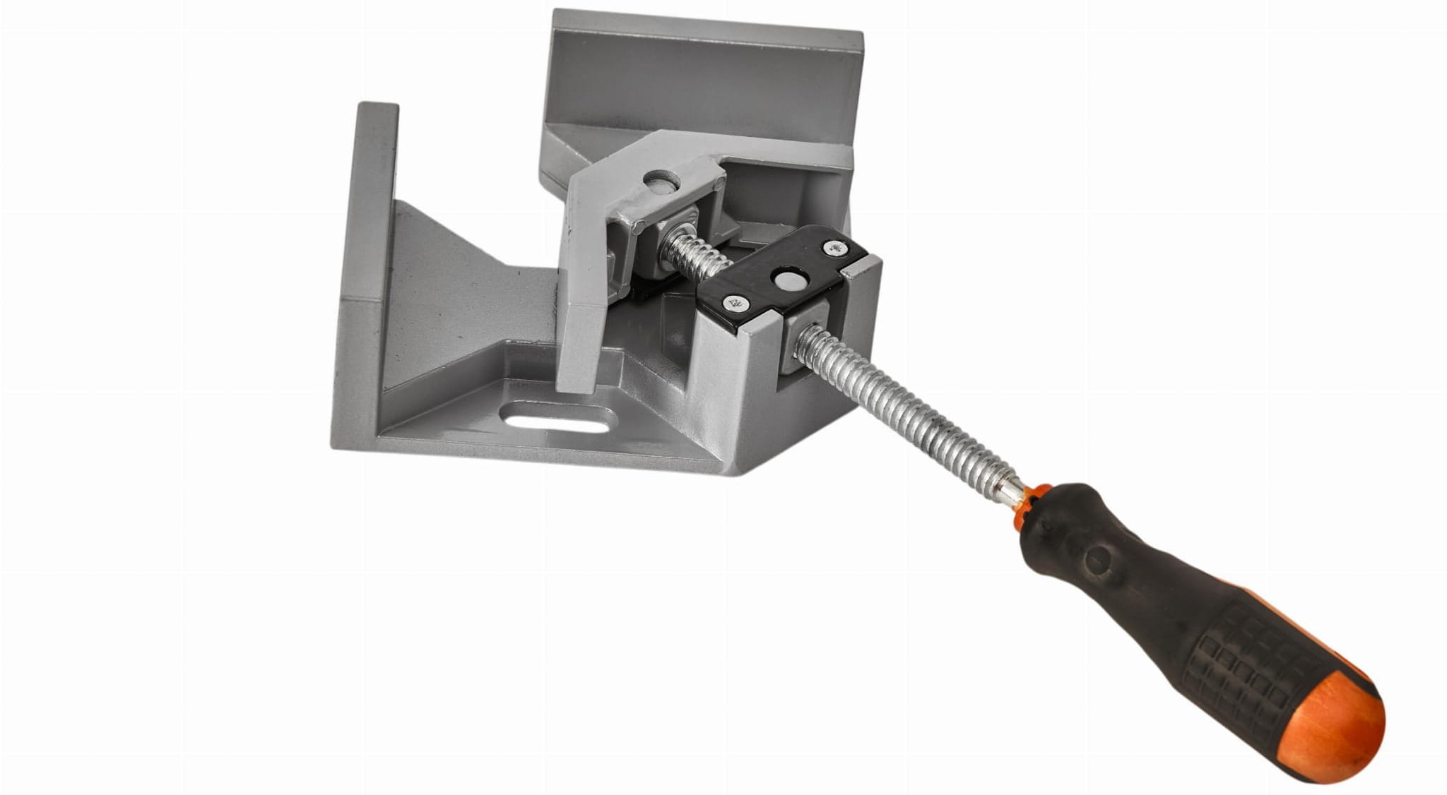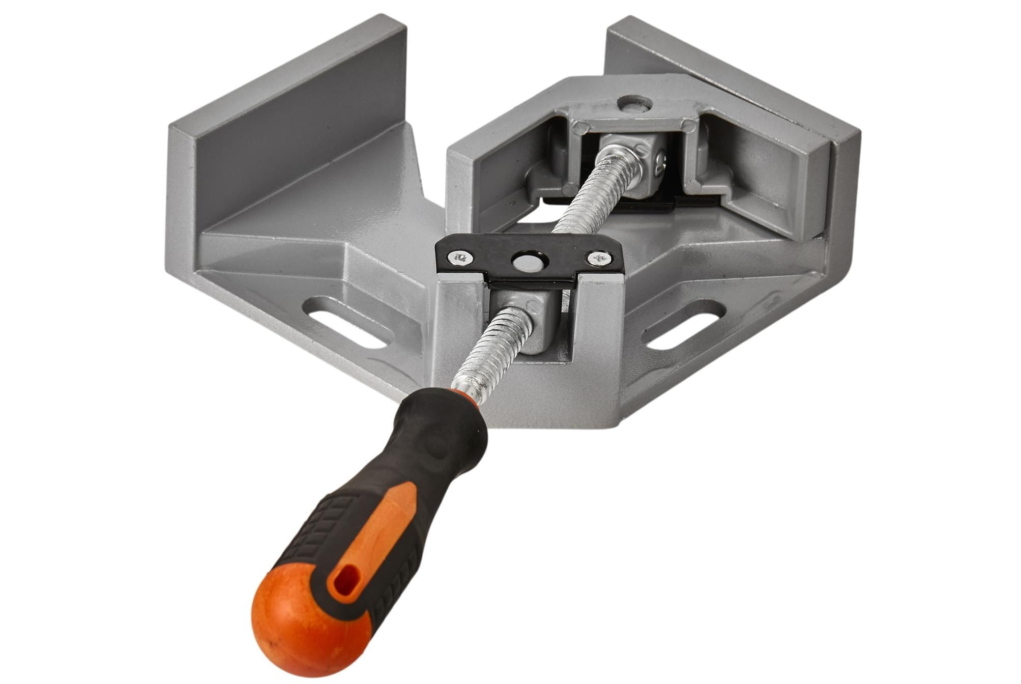 Ścisk kątowy KD1191 służy do dociskania i utrzymywania elementów pod kątem 90° podczas klejenia, montażu i innych prac stolarskich. Korpus oraz szczęki wykonano z odlewu aluminiowego, a wrzeciono dociskowe — ze stali z gwintem trapezowym, co zapewnia trwałość mechanizmu przy wielokrotnym użytkowaniu.