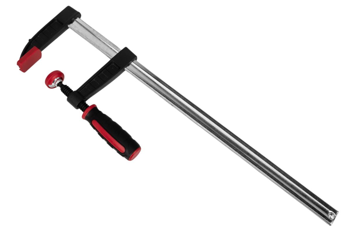 Ścisk stolarski w kształcie litery F przeznaczony do dociskania i łączenia elementów drewnianych podczas klejenia, montażu i obróbki stolarskiej. Konstrukcja oparta na prowadnicy z systemem szybkiego przesuwu umożliwia sprawne ustawienie rozstawu szczęk bez konieczności wielokrotnego obracania śruby dociskowej.