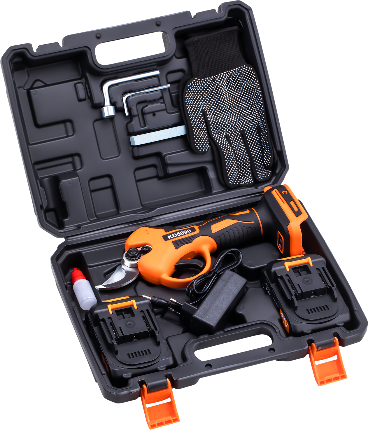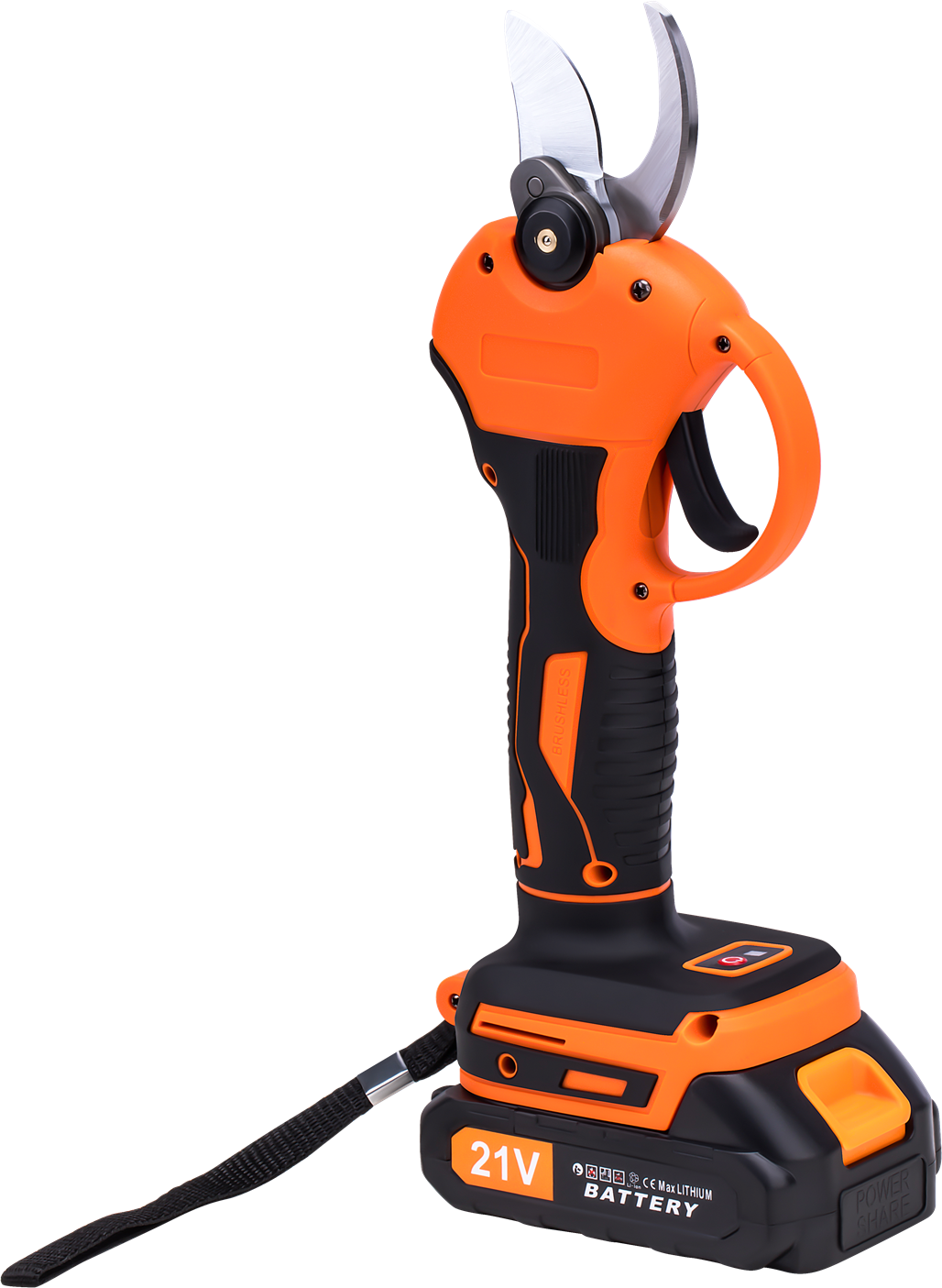 Sekator akumulatorowy zasilany dwoma akumulatorami 21V/2Ah, przeznaczony do przycinania gałęzi, żywopłotów i winorośli. Ostrza ze stali wysokowęglowej SK5 pracują z prędkością do 120 cięć na minutę, co pozwala na sprawne wykonywanie prac ogrodniczych przez dłuższy czas bez dostępu do sieci elektrycznej.