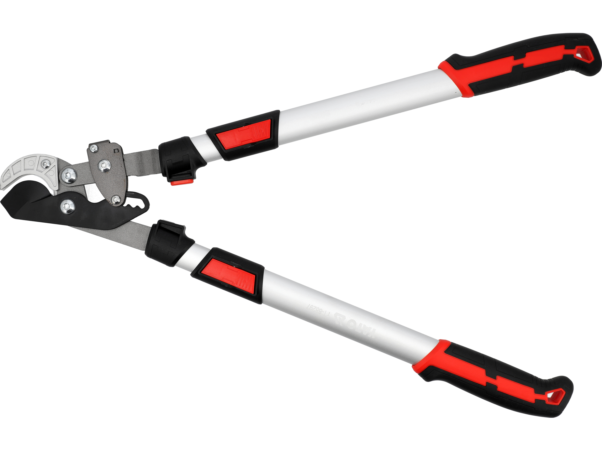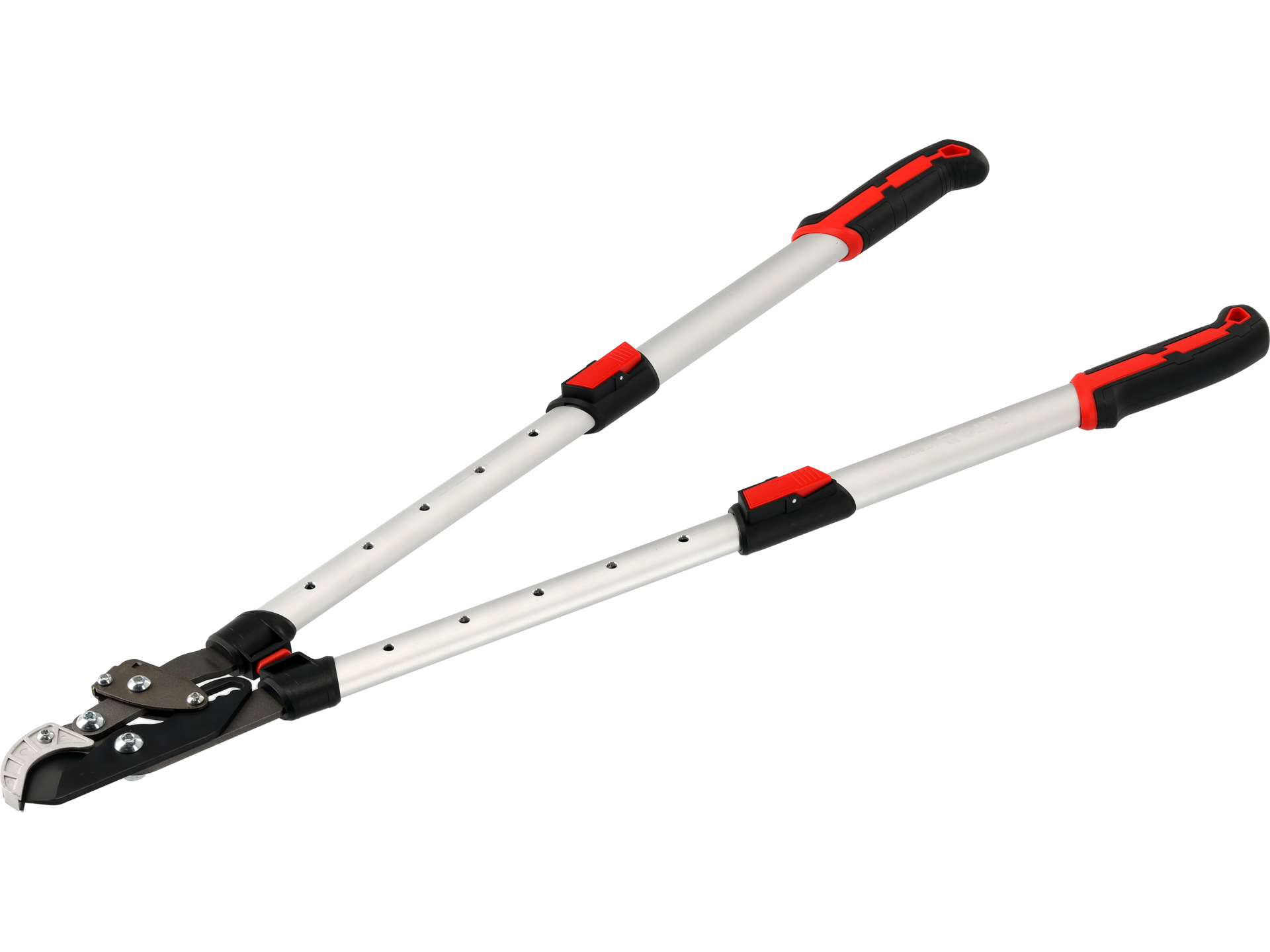 Sekator teleskopowy z trzystopniowym mechanizmem grzechotki przeznaczony do cięcia grubych gałęzi o średnicy do 40 mm. Regulowana długość rękojeści oraz ostrze z hartowanej stali SK5 z powłoką PTFE zapewniają efektywną pracę przy ograniczonym wysiłku fizycznym.