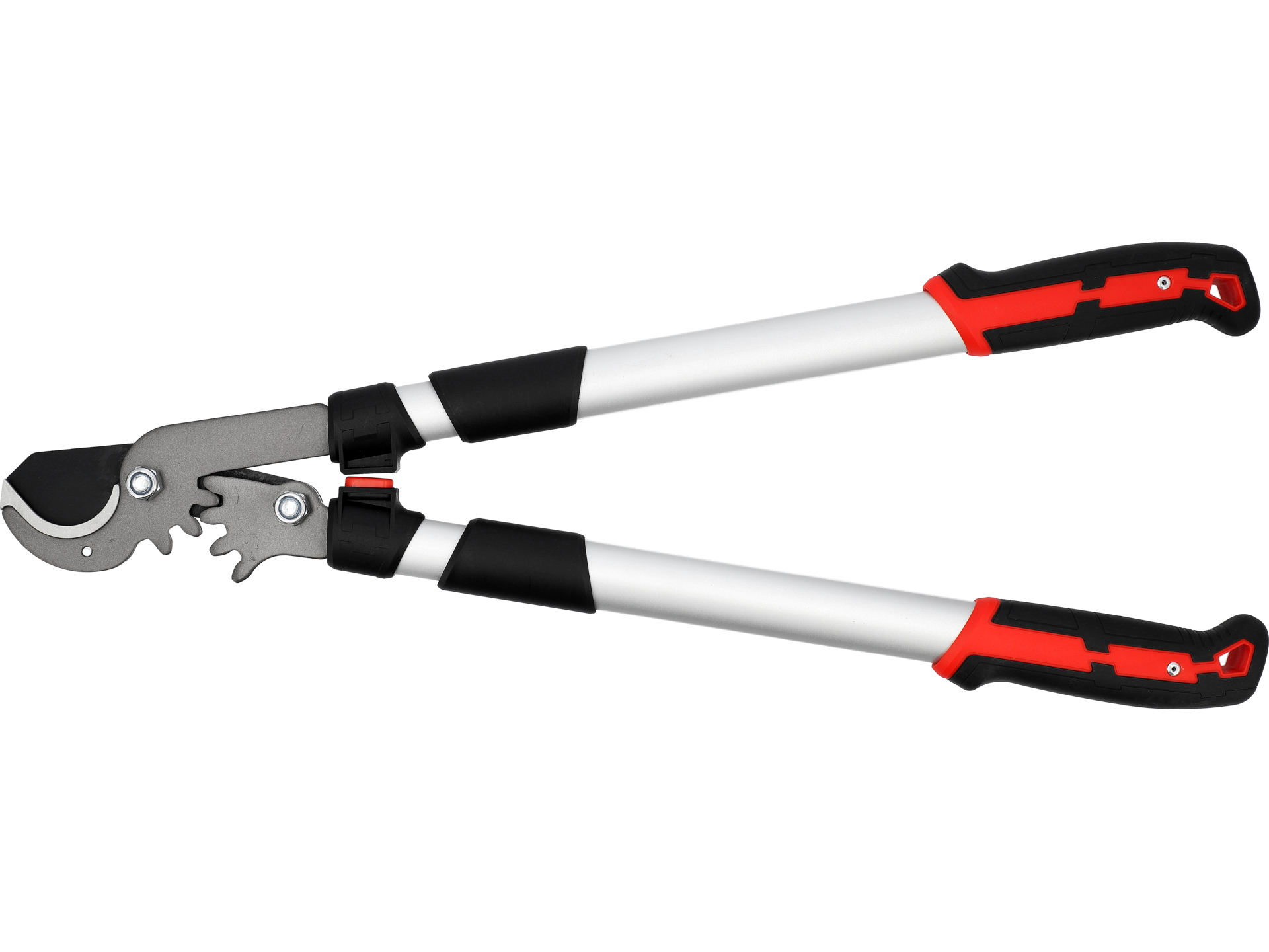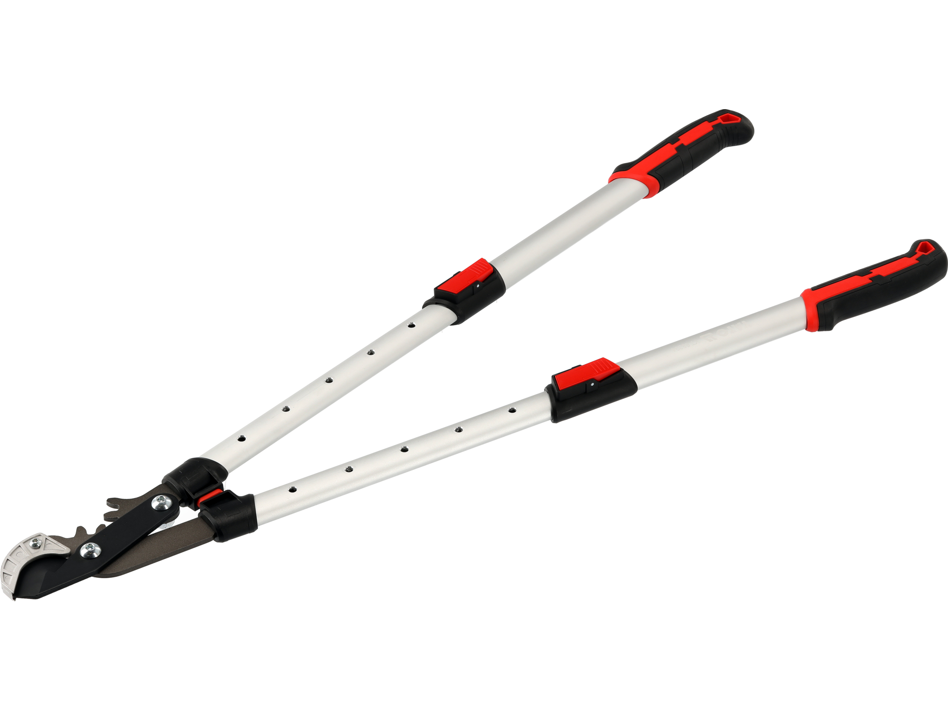 Sekator do gałęzi z przekładnią dźwigniową i teleskopową regulacją długości ramion. Narzędzie zaprojektowane do cięcia suchych i zdrewniałych gałęzi o średnicy do 40 mm, wyposażone w ostrze ze stali SK5 z powłoką antypoślizgową PTFE oraz aluminiową konstrukcję o masie 1474 g.