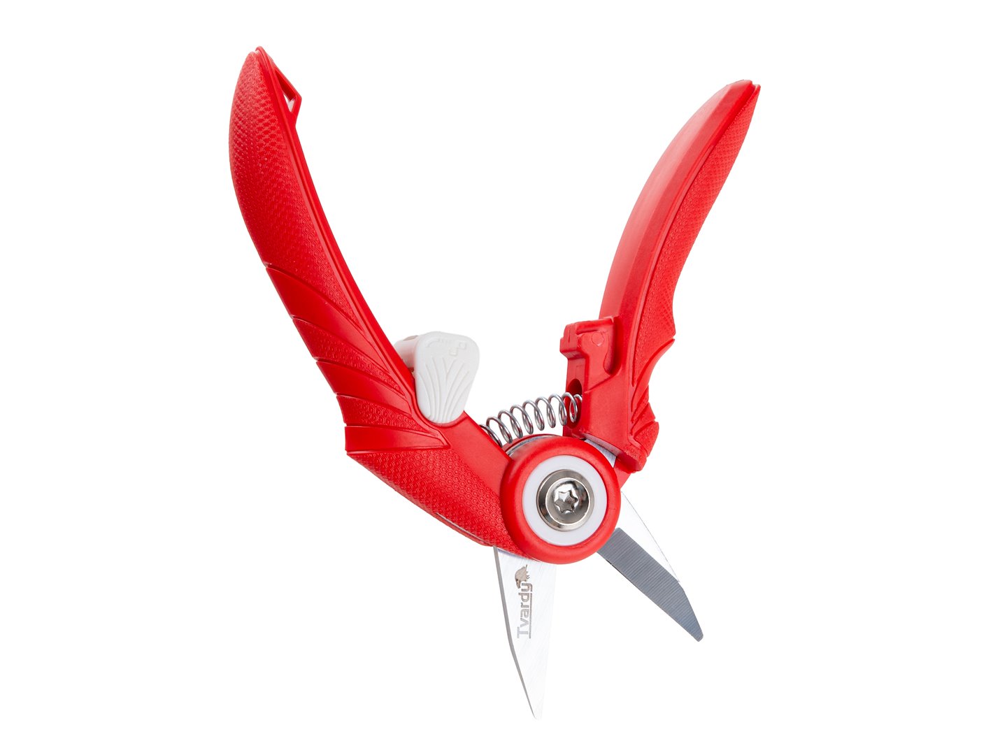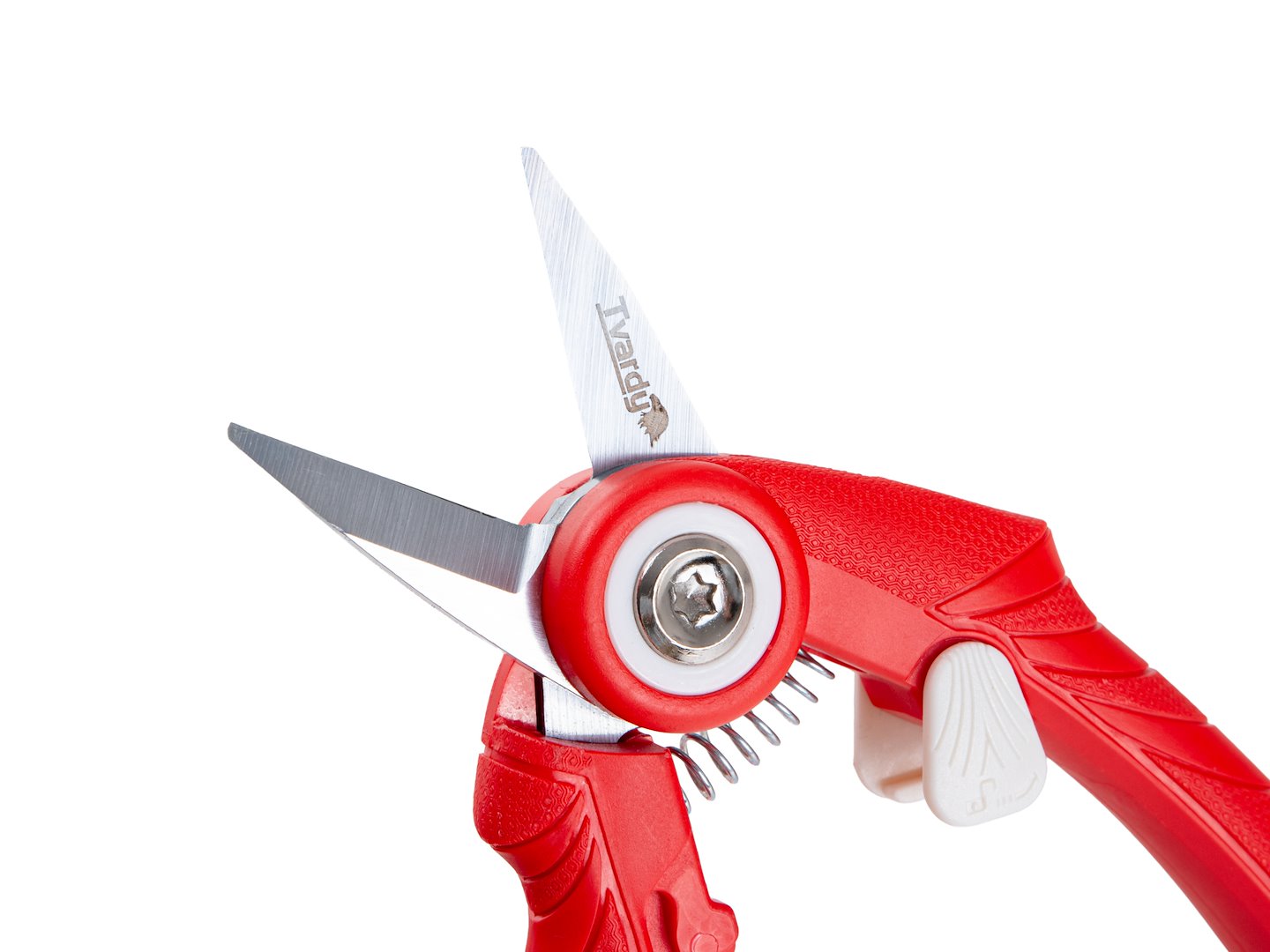 Uchwyt pokryty tworzywem sztucznym w kolorze czerwonym zapewnia pewny chwyt podczas pracy. Kształt rękojeści jest dostosowany do naturalnego ułożenia dłoni, co zmniejsza zmęczenie przy dłuższych sesjach przycinania.
