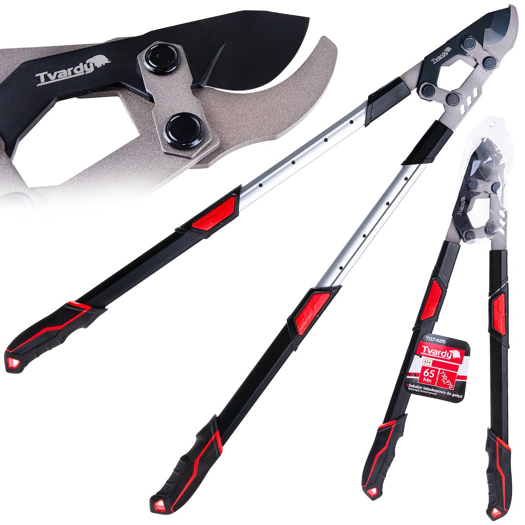 Sekator z teleskopowym trzonkiem regulowanym w zakresie 730–970 mm, przeznaczony do cięcia świeżych pędów i gałęzi zlokalizowanych powyżej wygodnego zasięgu rąk. Wyposażony w mechanizm przekładni zwiększający siłę cięcia oraz ostrze mijające ze stali 65Mn z powłoką PTFE.