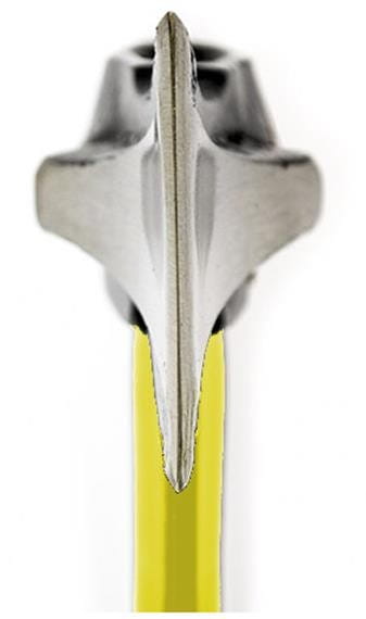 Rdzeń trzonka wykonano z włókna szklanego (fiberglass), które cechuje się wyższą odpornością na złamania i drgania niż drewno. Osadzenie głowicy realizowane jest metodą odlewu na gorąco — stopiona masa włókna szklanego wypełnia wnętrze obucha, tworząc nierozłączne połączenie. Specjalne wytłoczenie wewnętrznej części obucha dodatkowo blokuje możliwość wysunięcia się głowicy.