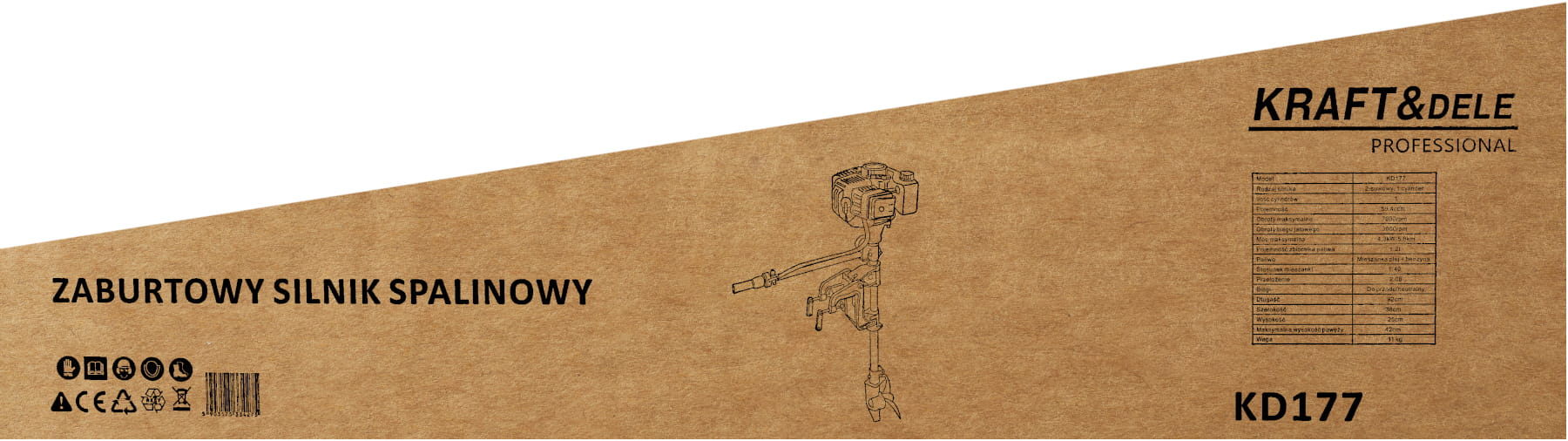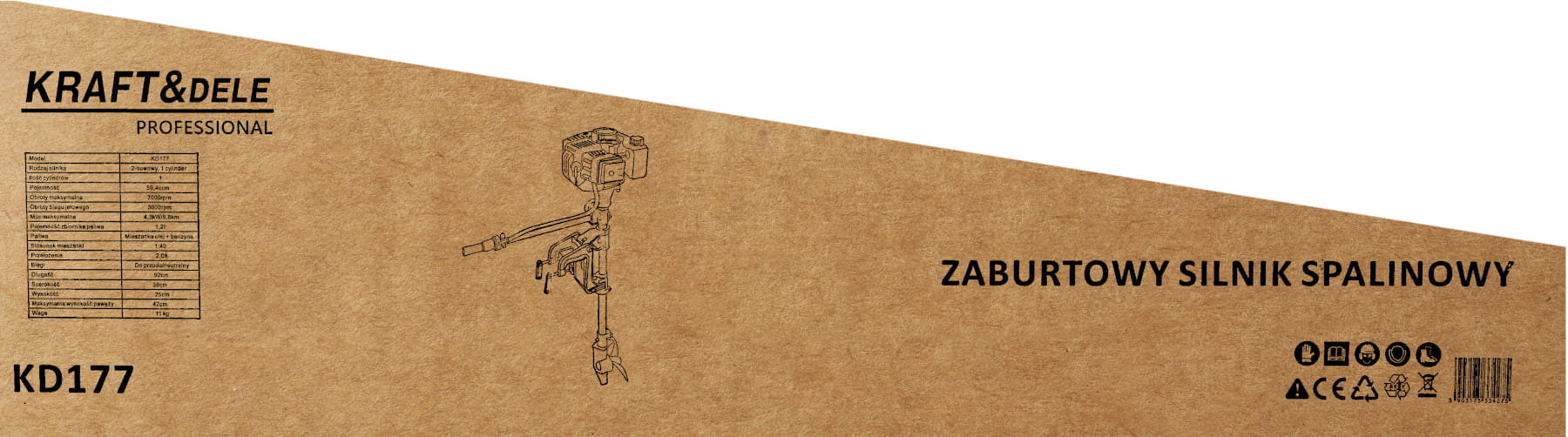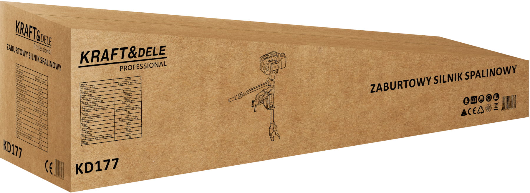 KD177 to jednocylindrowy silnik zaburtowy spalinowy z napędem dwusuwowym, przeznaczony do łodzi wiosłowych i pontonów o niewielkiej wyporności. Jednostka napędowa zasilana mieszanką benzyny z olejem zapewnia stosunek masy do mocy odpowiedni do zastosowań rekreacyjnych i wędkarskich.