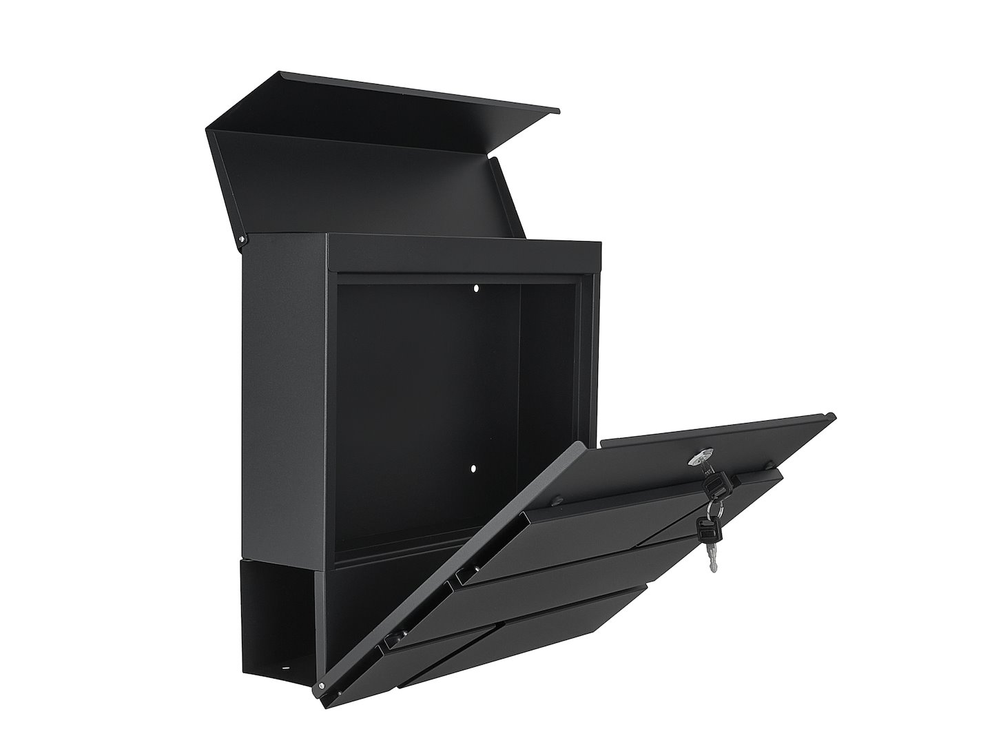 Dodatkowy schowek w dolnej części skrzynki pozwala na oddzielenie większych przesyłek — gazet, katalogów i ulotek — od właściwej korespondencji. Dzięki temu listy nie są zgniatane przez grubsze materiały.