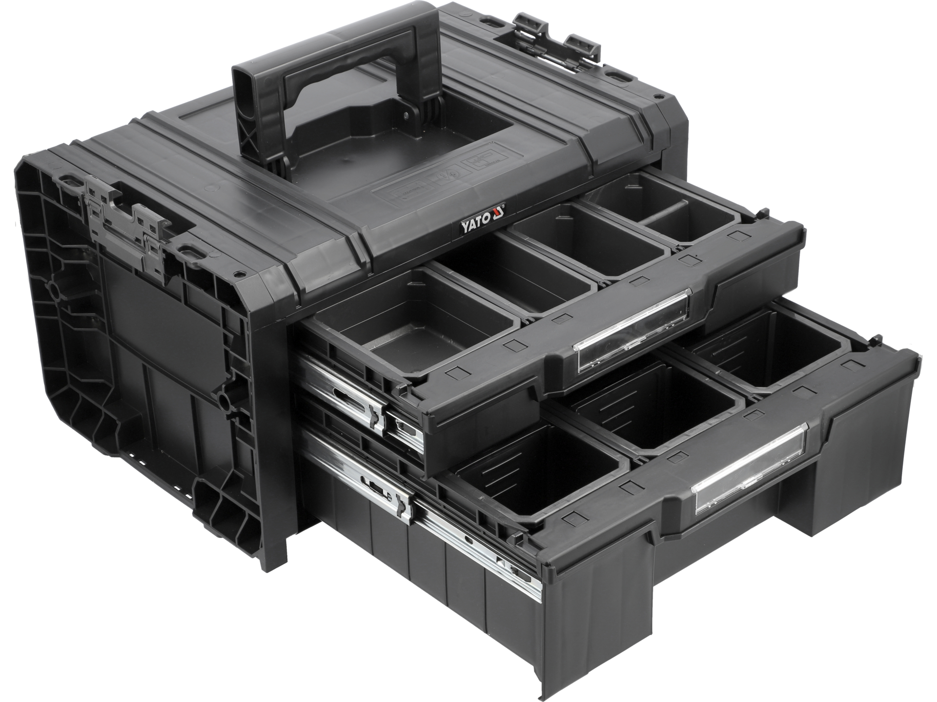 Organizacja mobilnego warsztatu staje się prostsza dzięki opcji montażu skrzynki na jeżdżącej platformie oraz kompatybilności z systemem S1 i S12. YATO YT-08973 może być połączona z innymi elementami systemu, tworząc funkcjonalny wózek narzędziowy.