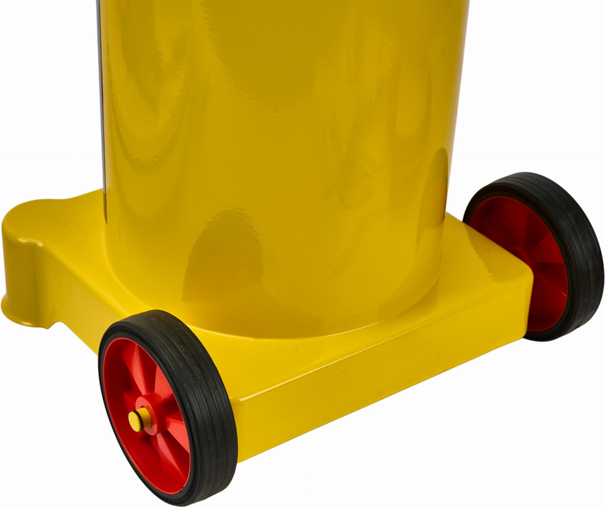 Stabilna podstawa z dużymi kołami transportowymi pozwala przemieszczać urządzenie (13 kg) po powierzchni warsztatu bez konieczności jego przenoszenia. Uchwyt umieszczony w górnej części obudowy ułatwia manewrowanie w ciasnych przestrzeniach.
